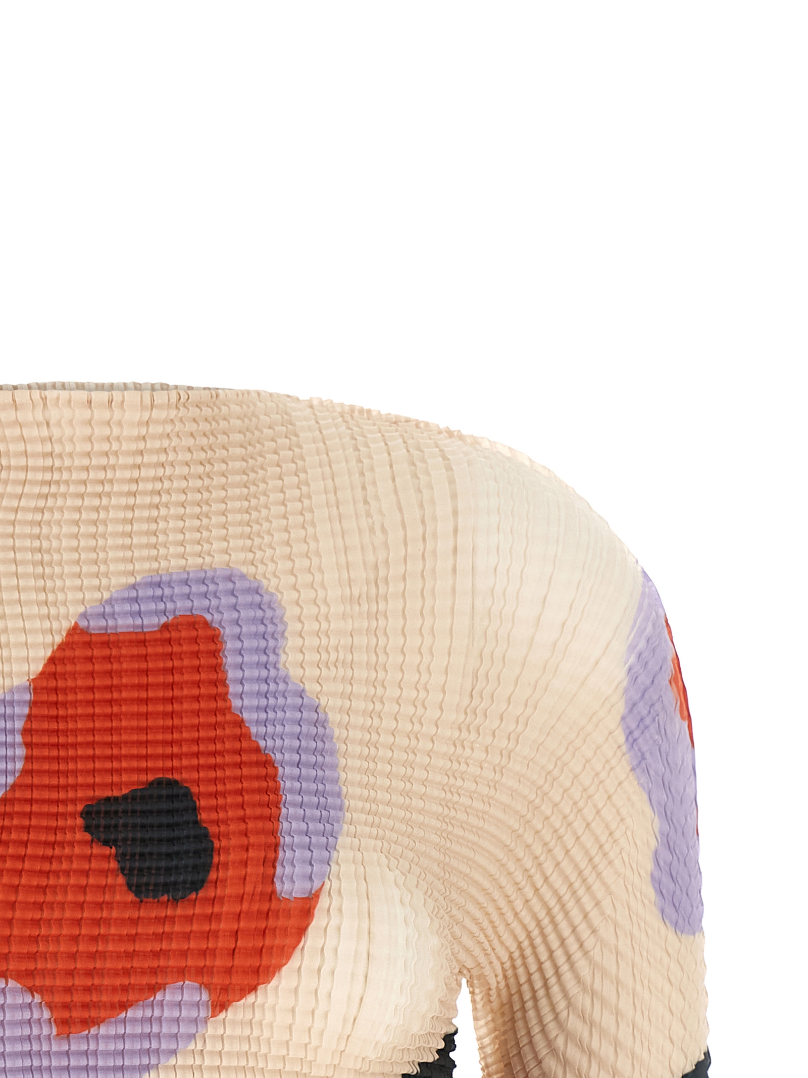 ‘Verve Pleats ‘ toe in pleated fabric with all-over print, boat neck, short sleeves.