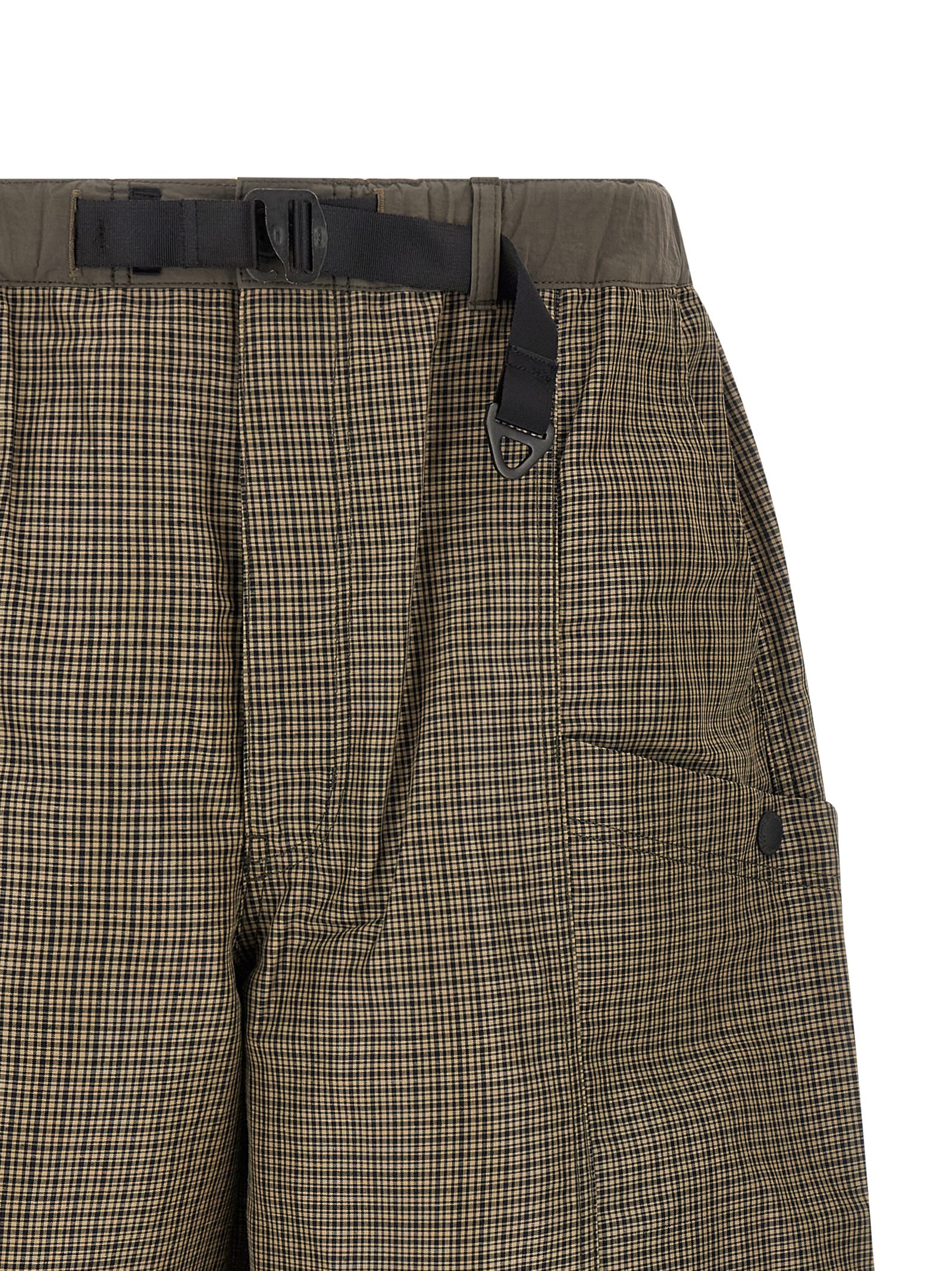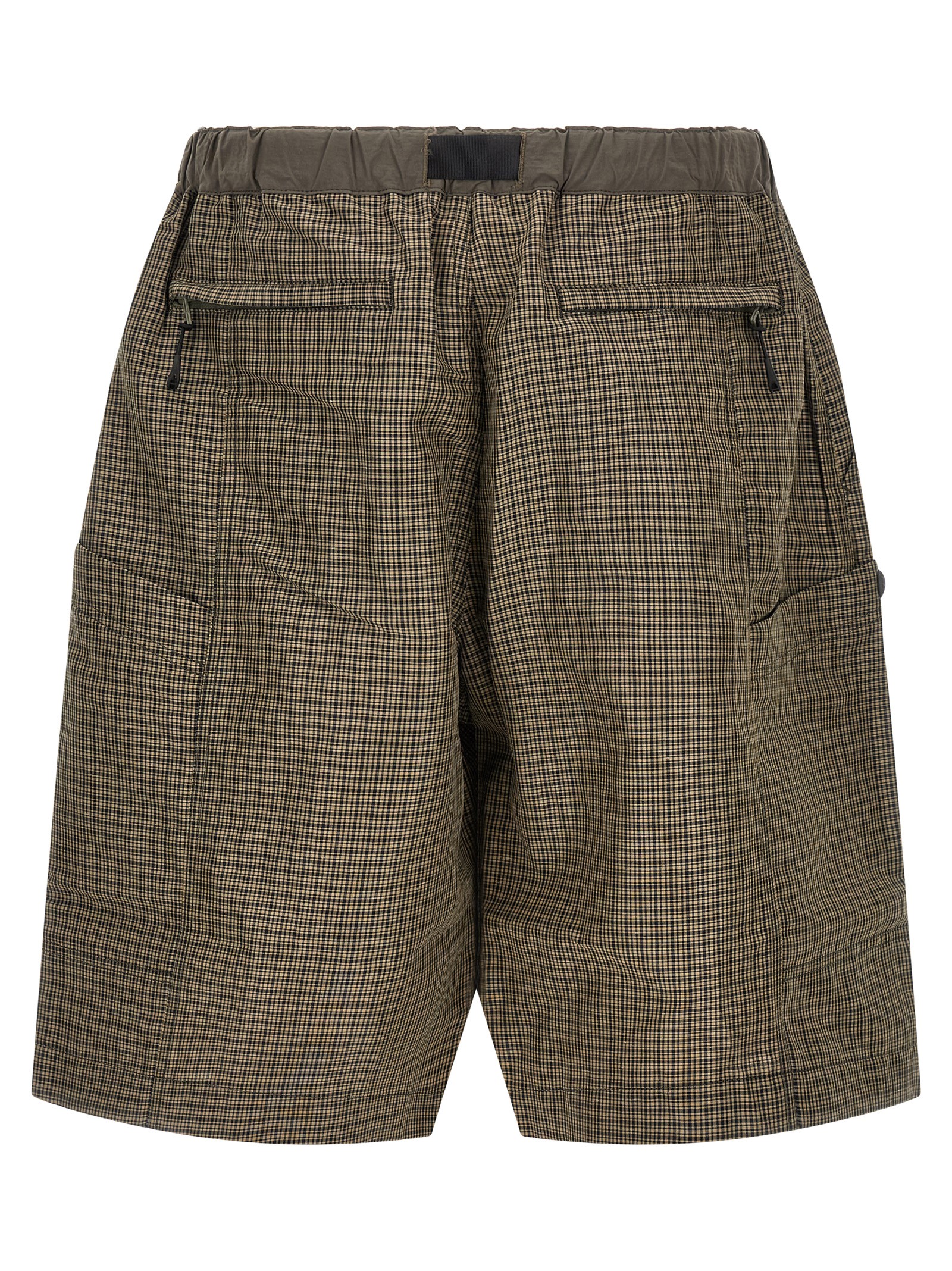 Vichy micro check pattern linen blend bermuda shorts, wide leg, zip and front button closure, elastic with belt integrated at the waist, pockets.