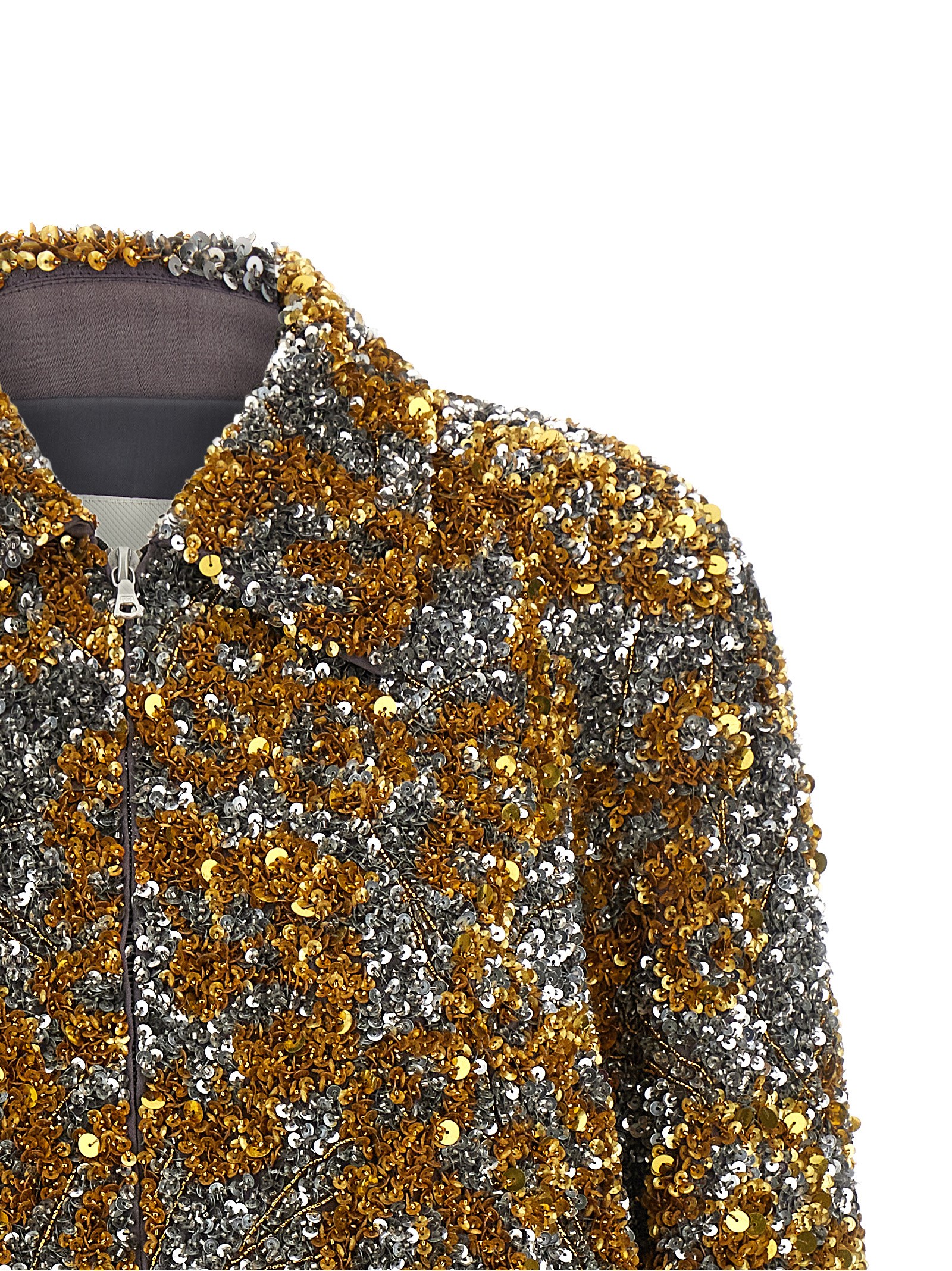‘Vinnia’ viscose jacket with all-over sequins and beads, shiny viscose lining, shirt collar, front zip closure, pockets, long sleeves with elastic cuffs, elastic hem.