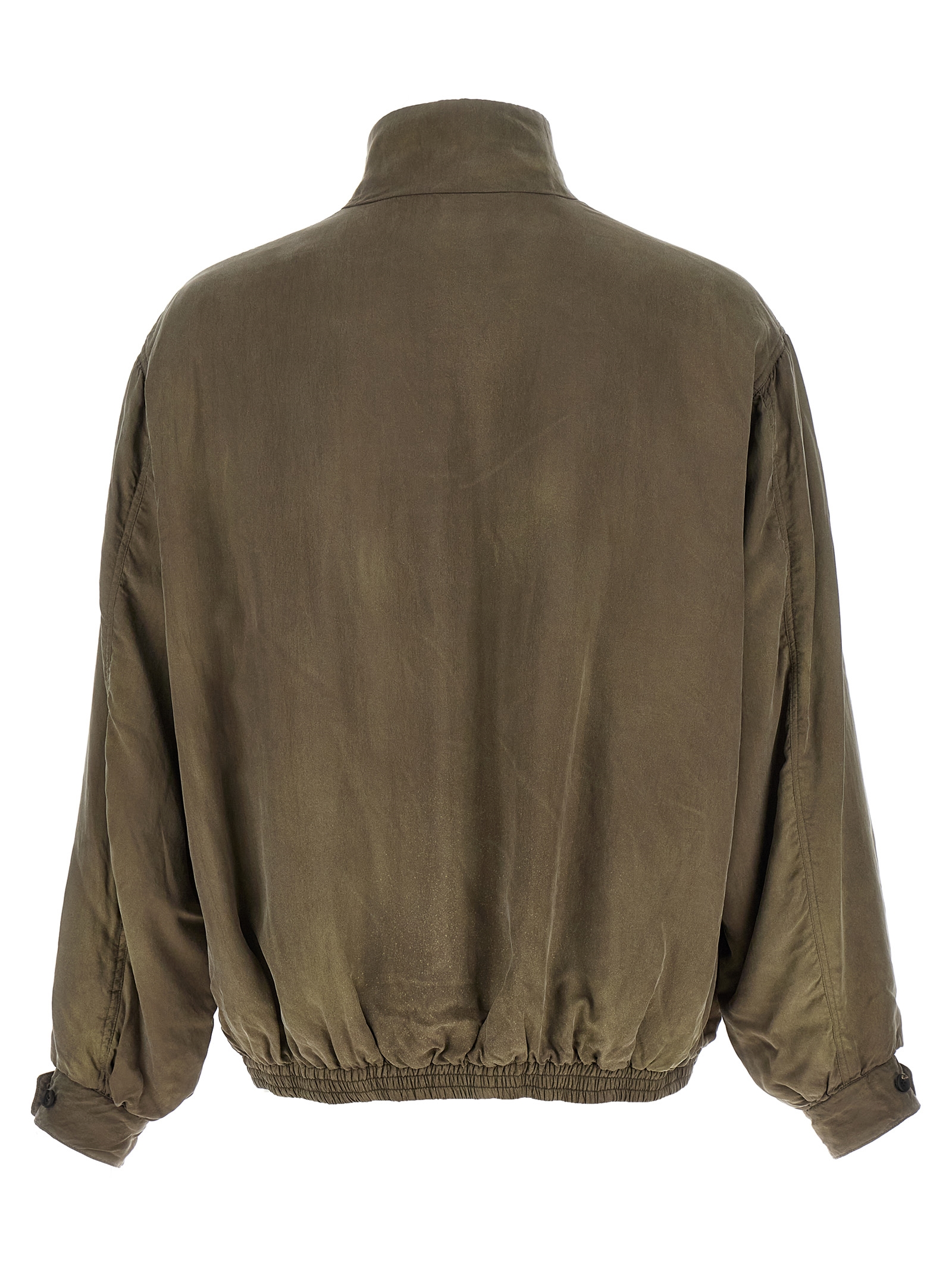 Cupro bomber jacket with slightly padded Vintage effect, high neck, front zip closure, pockets, long sleeves with adjustable cuffs and dropped shoulder, elastic hem, lining, one inner pocket.