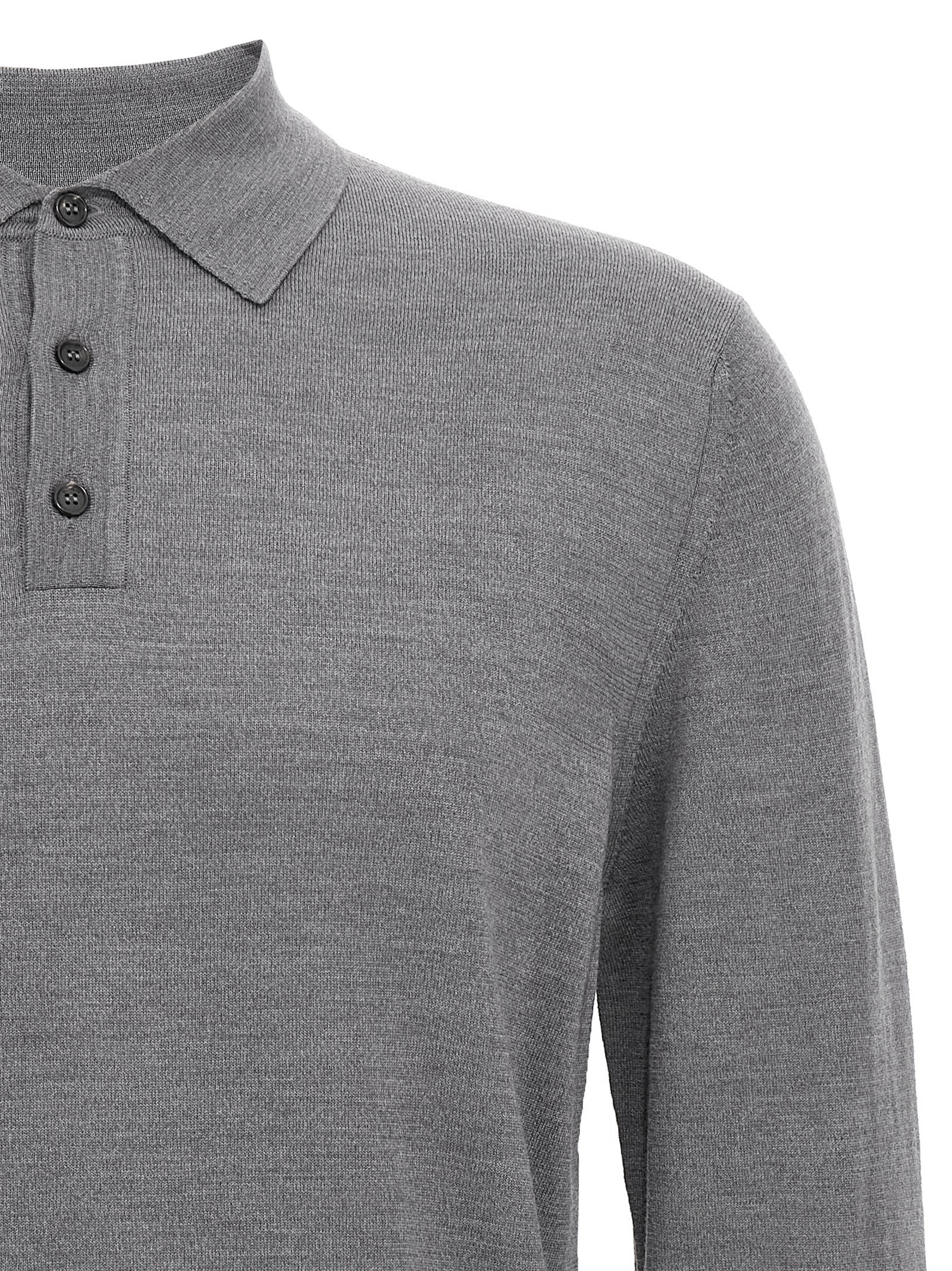 Flexwool wool polo shirt with collar and buttons, long cuffed sleeves.
