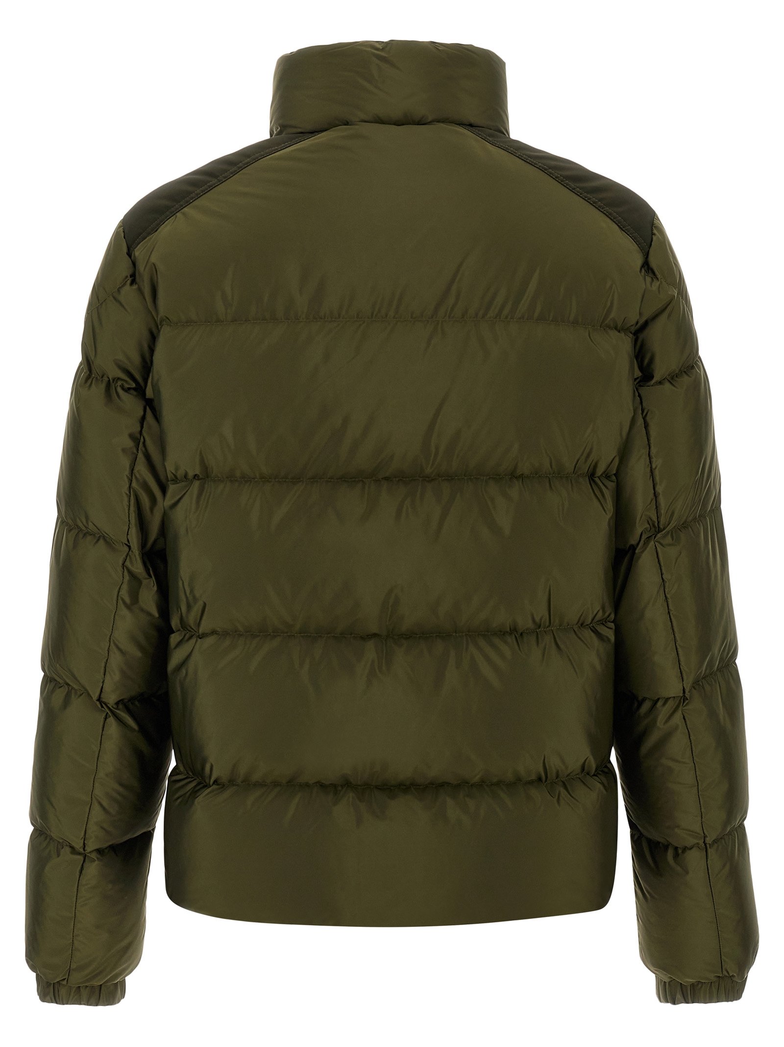 ‘Virolais’ quilted water-repellent nylon down jacket with goose down padding, tone-on-tone details with contrasting texture, standing collar, front zip closure, pockets, long sleeves with elastic cuffs and felt logo patch, drawstring on the hem.