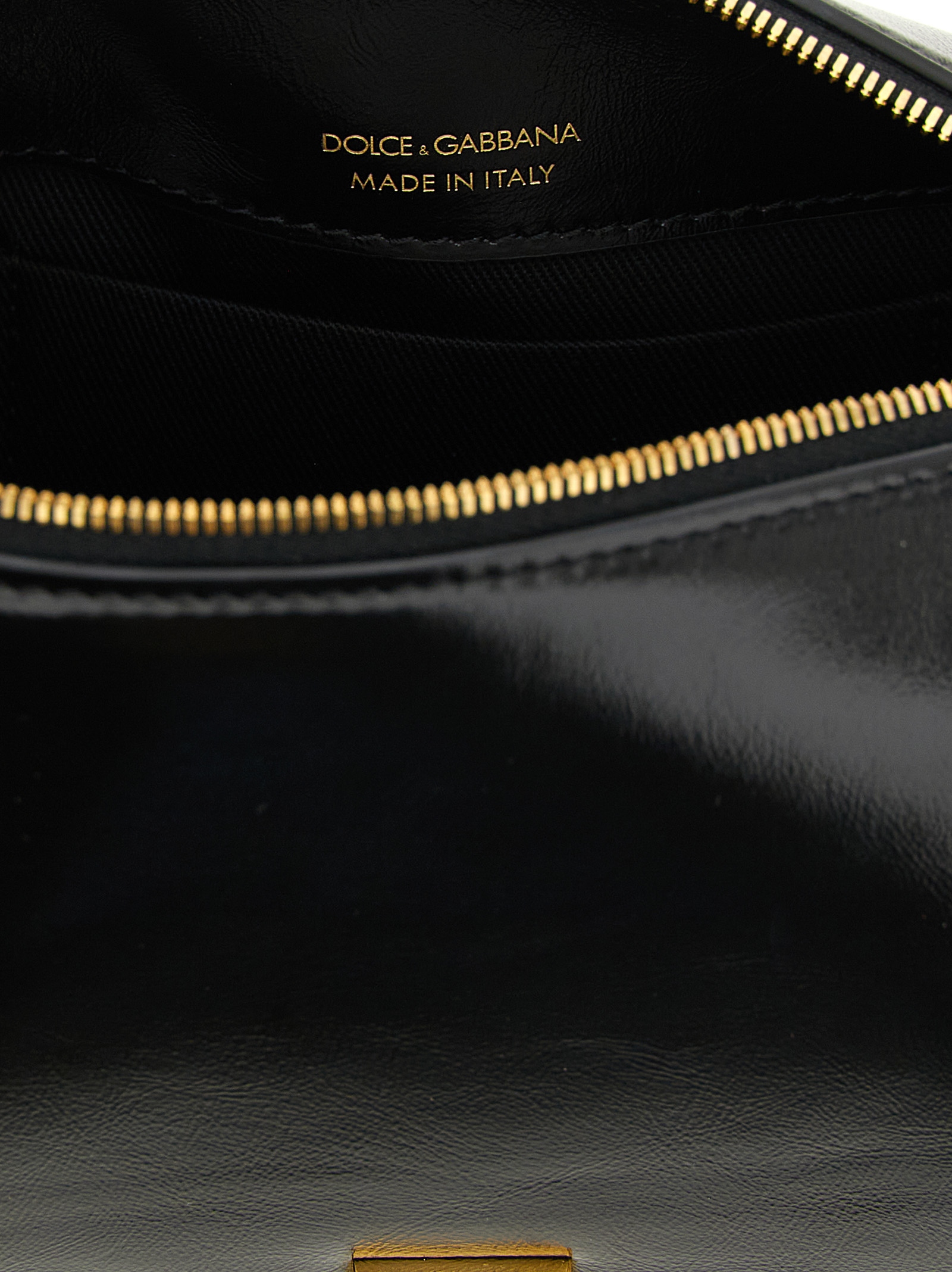 ‘Vittoria’ mini calf leather handbag, monogalvanic tag with front engraved logo, top zip closure with chain zip puller and removable metal charms, opening handle, back embossed logo, adjustable and removable shoulder strap.