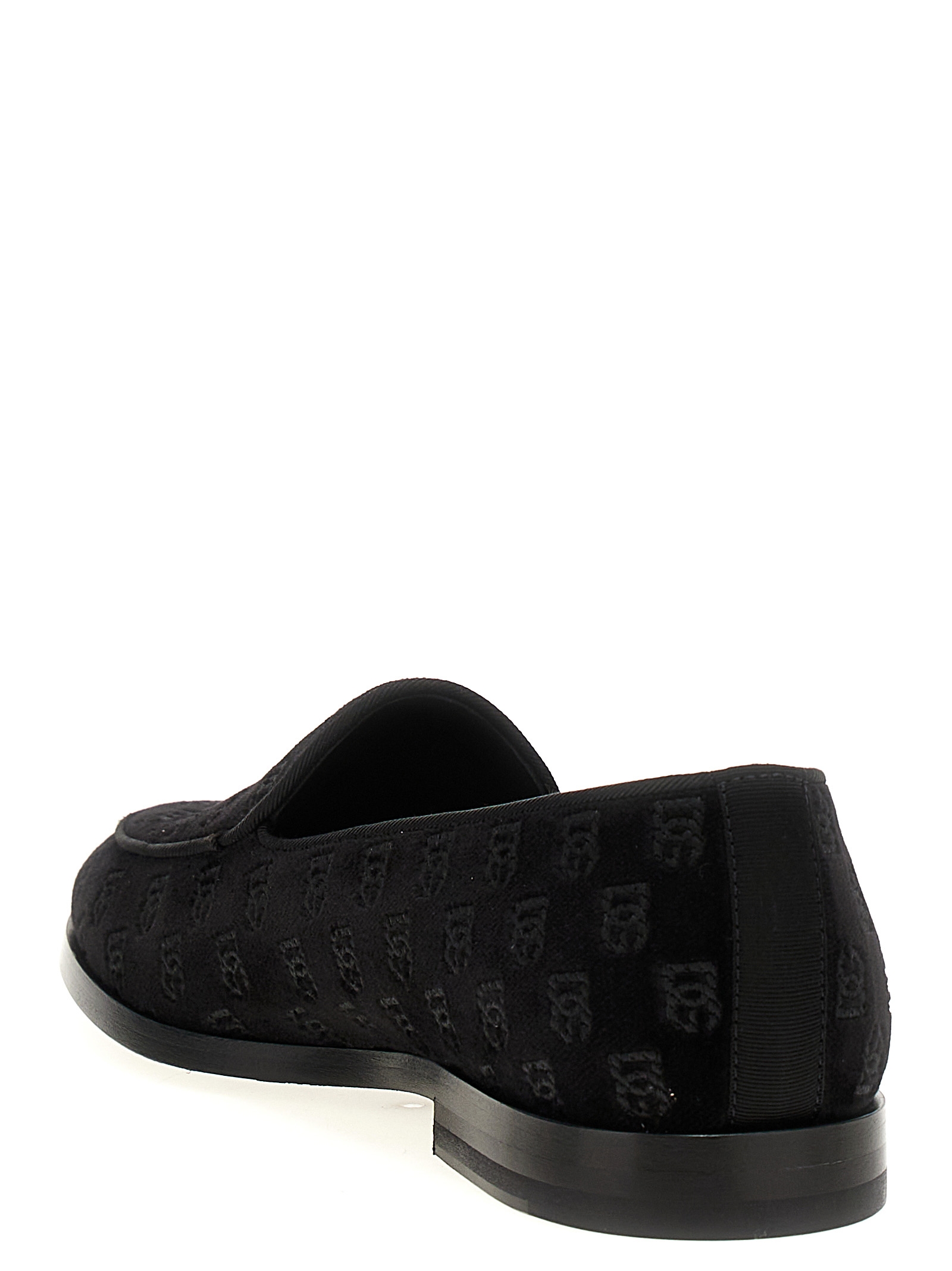 Vivaldi’ velvet loafers with grosgrain trim, all-over logo, and leather sole.
