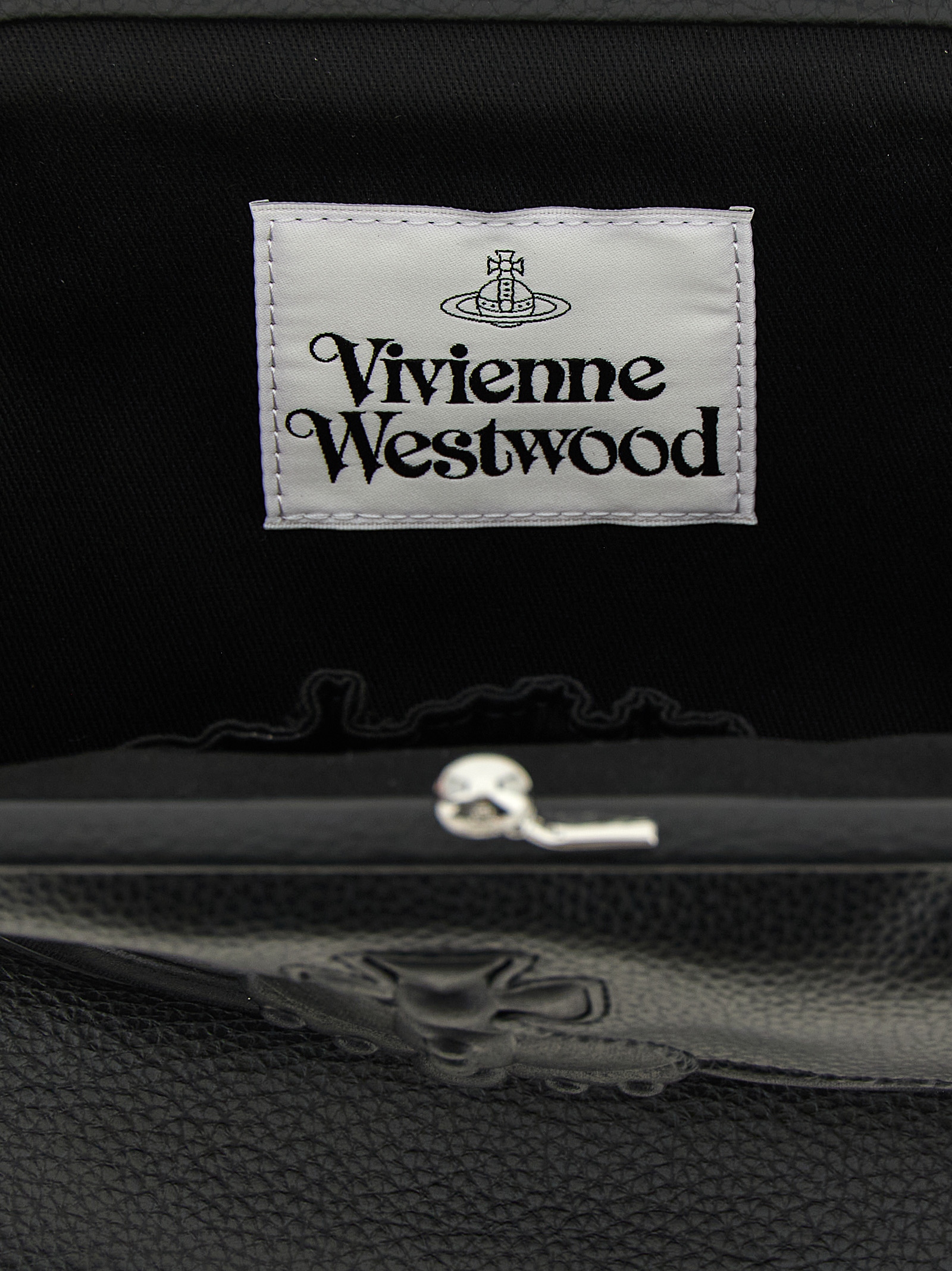 Vivienne’ hammered leather clutch with tone-on-tone ‘Injected Orb’ pattern on the front, rigid snap closure, cotton lining, inner pocket, and removable handle.