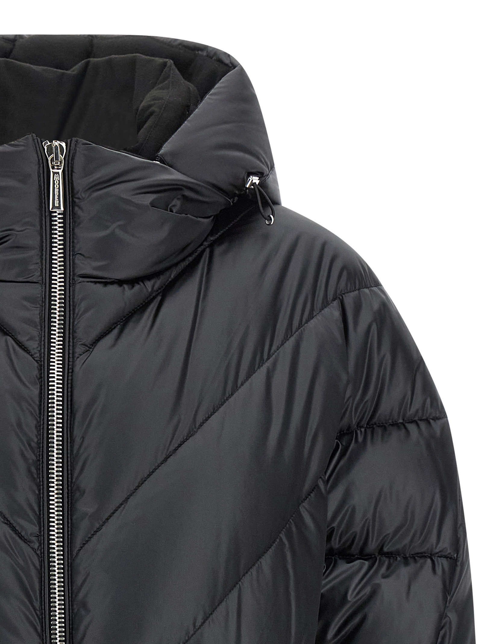 ‘Wanita’ down jacket in quilted technical fabric with goose feather padding, adjustable and removable hood, standing collar with removable fleece lining, front zip closure, pockets, long sleeves.