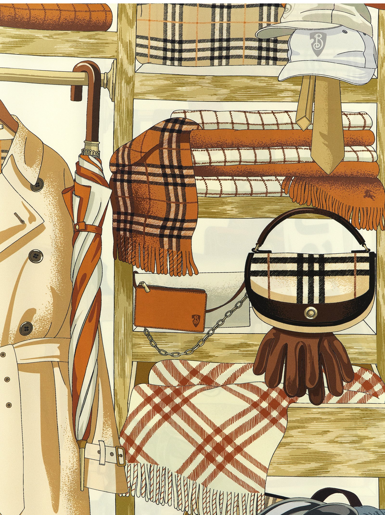 ‘Wardrobe’ silk twill scarf with hand-drawn graphic print inspired by a 1995 archival motif.