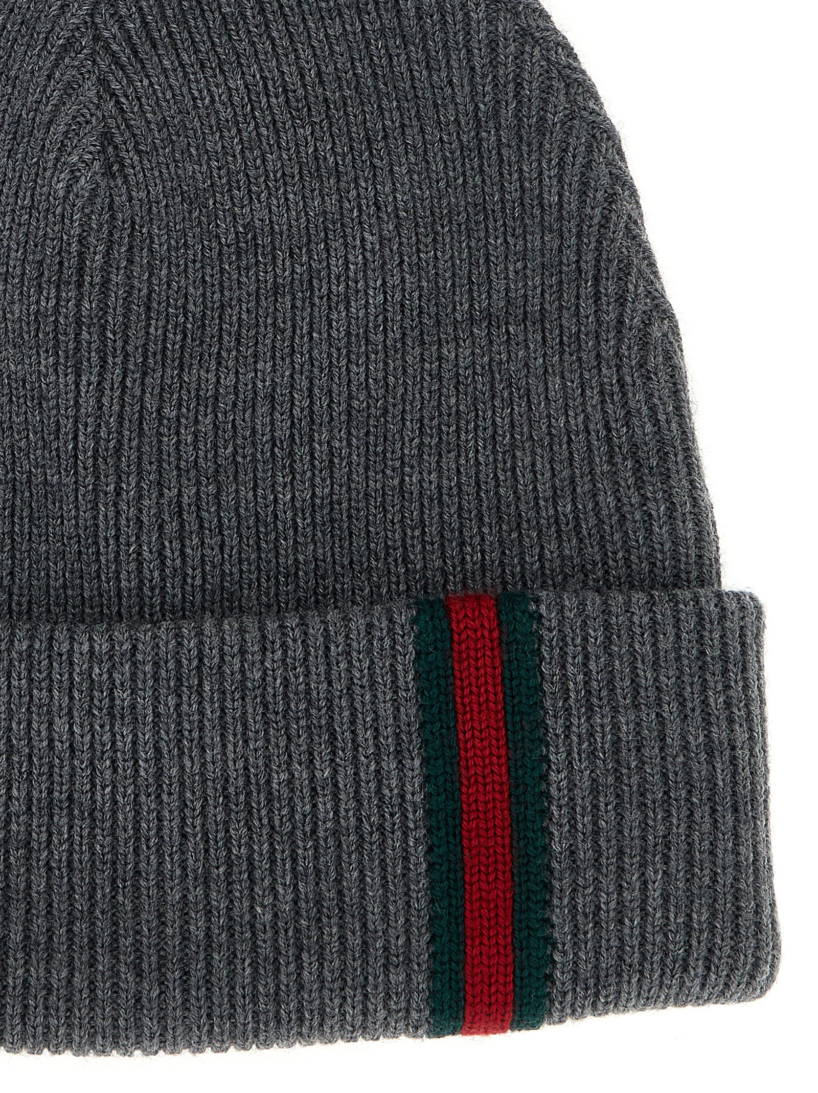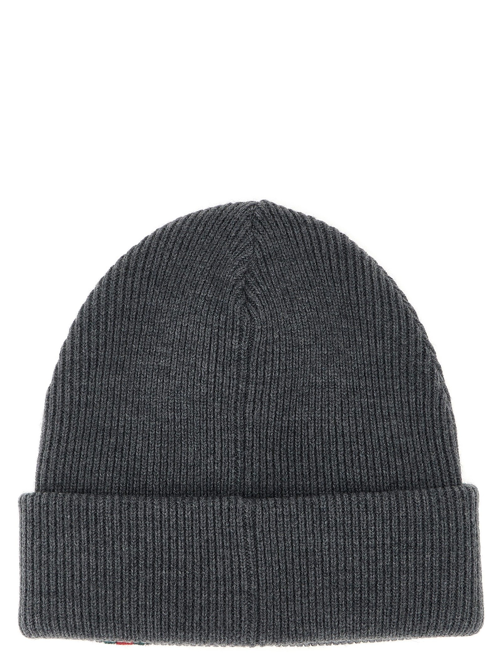 Ribbed wool beanie, turn-up with front Web detail.