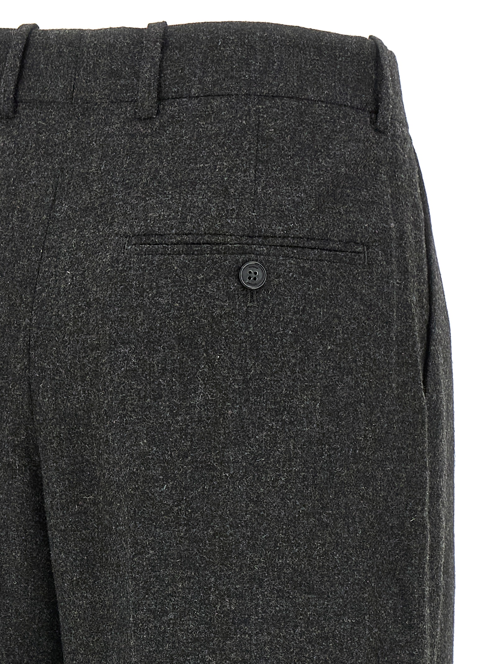 ‘Wide Flannel’ trousers in lightweight mélange flannel, structured low waist, wide and straight leg, pince, stretched pleat, hook and button zip closure, pockets.