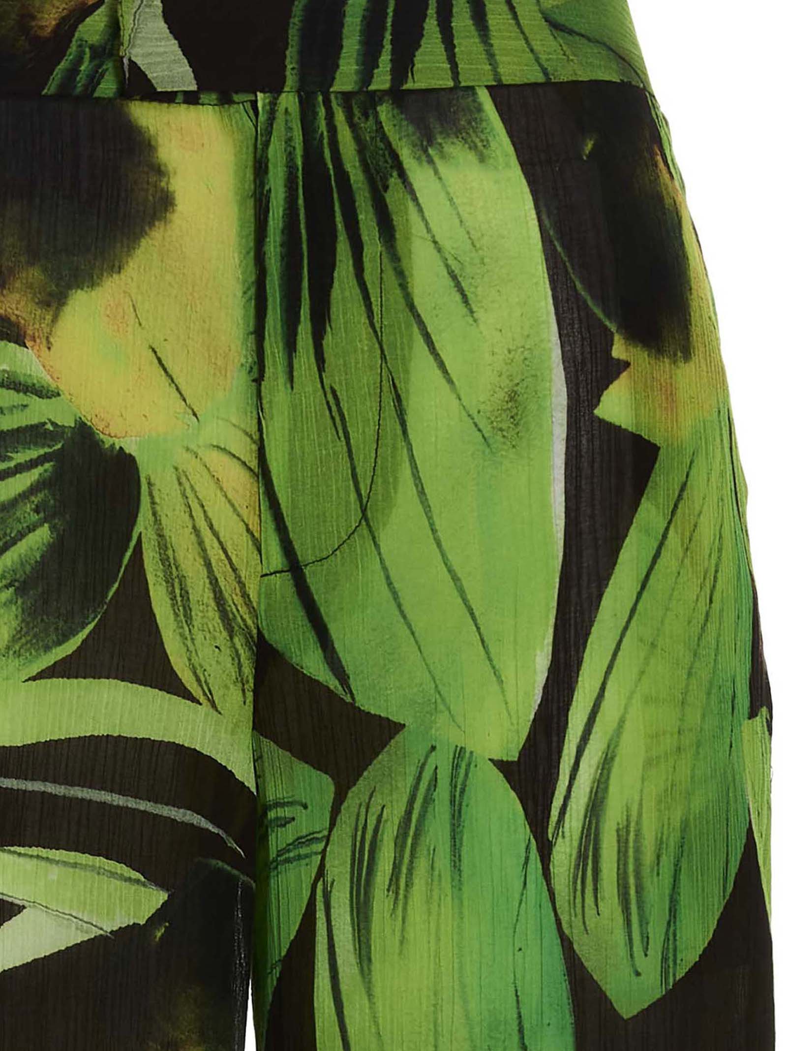 ‘Wide Leg’ silk blend pants with an all-over print, a zip, hook-and-eye and button closure, pockets and a loose leg.