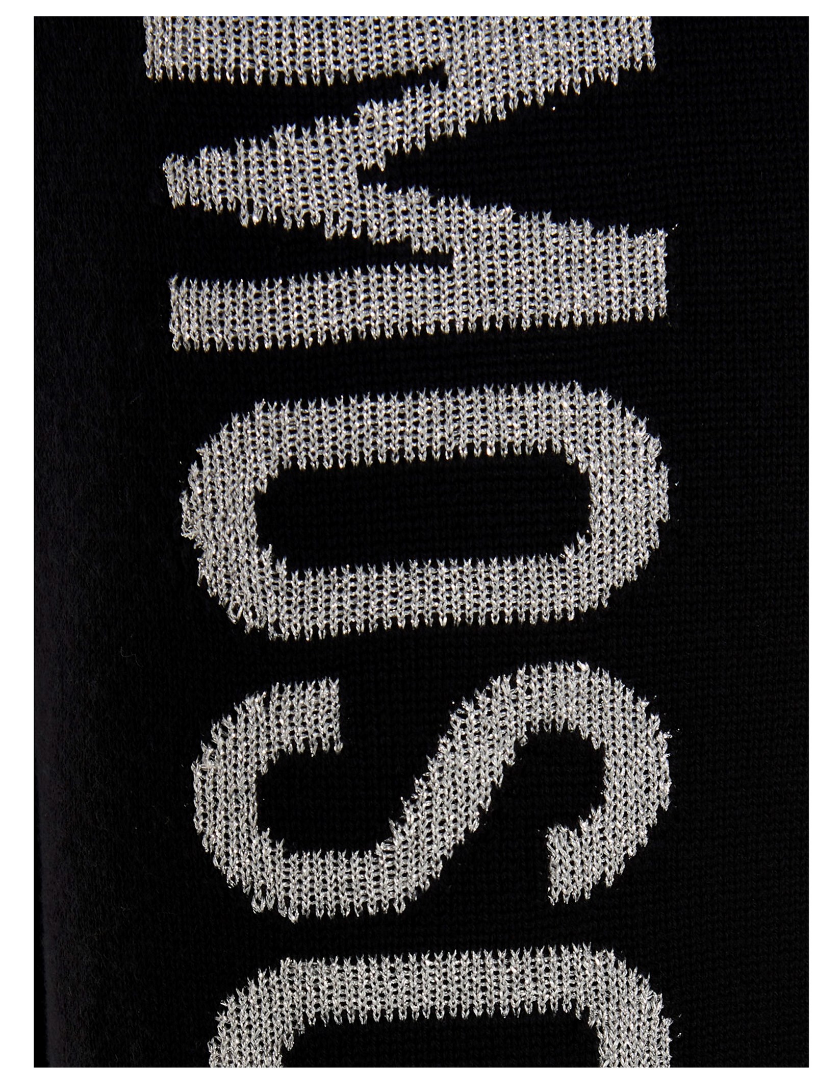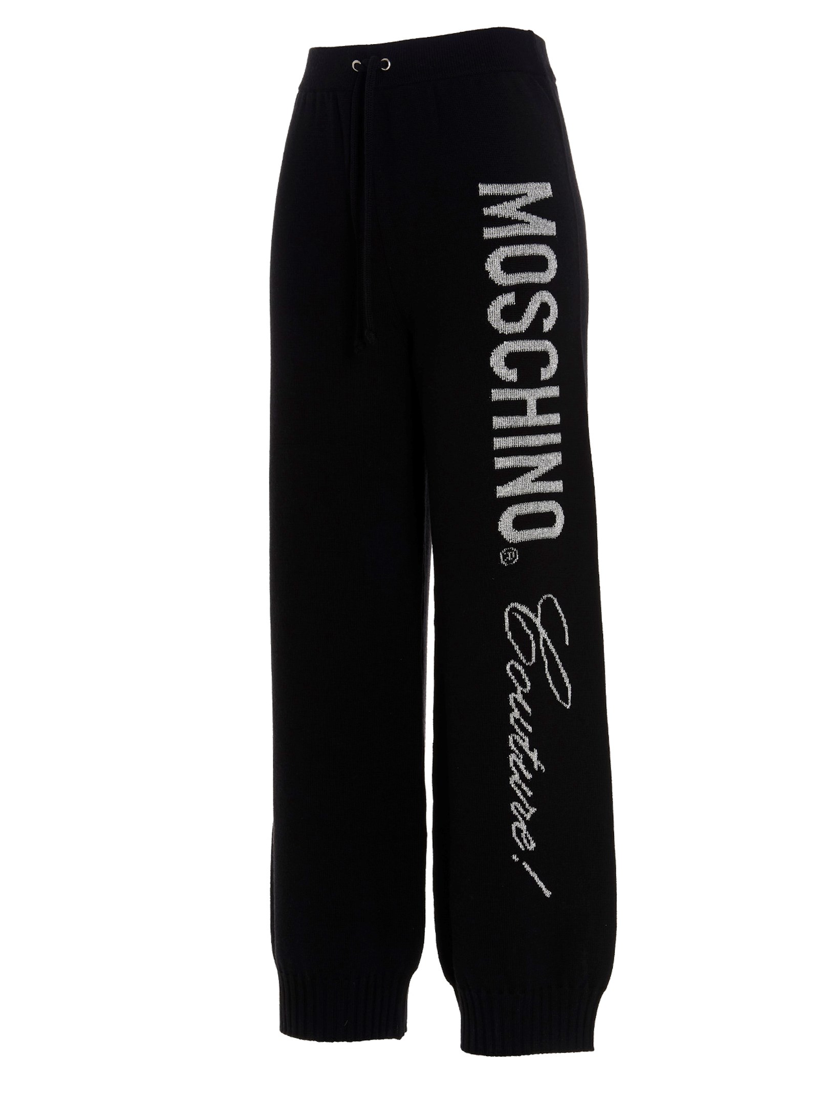 Wide virgin wool joggers with a silver lurex maxi logo and an elastic waistband.
