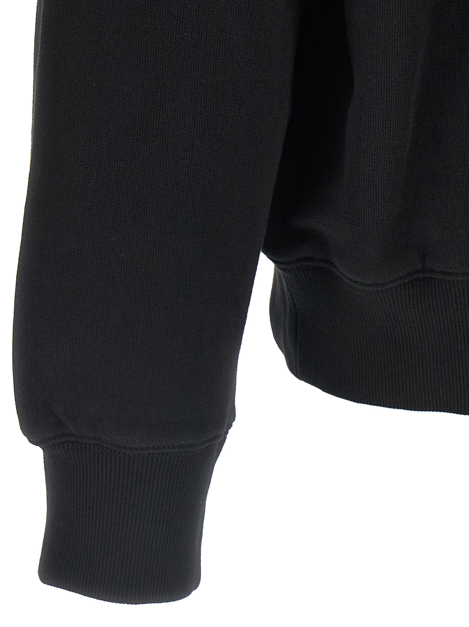 ‘Wild Dog’ hoodie in heavy unbrushed mélange cotton jersey, front print, kangaroo pocket, long cuffed sleeves and a dropped shoulder.