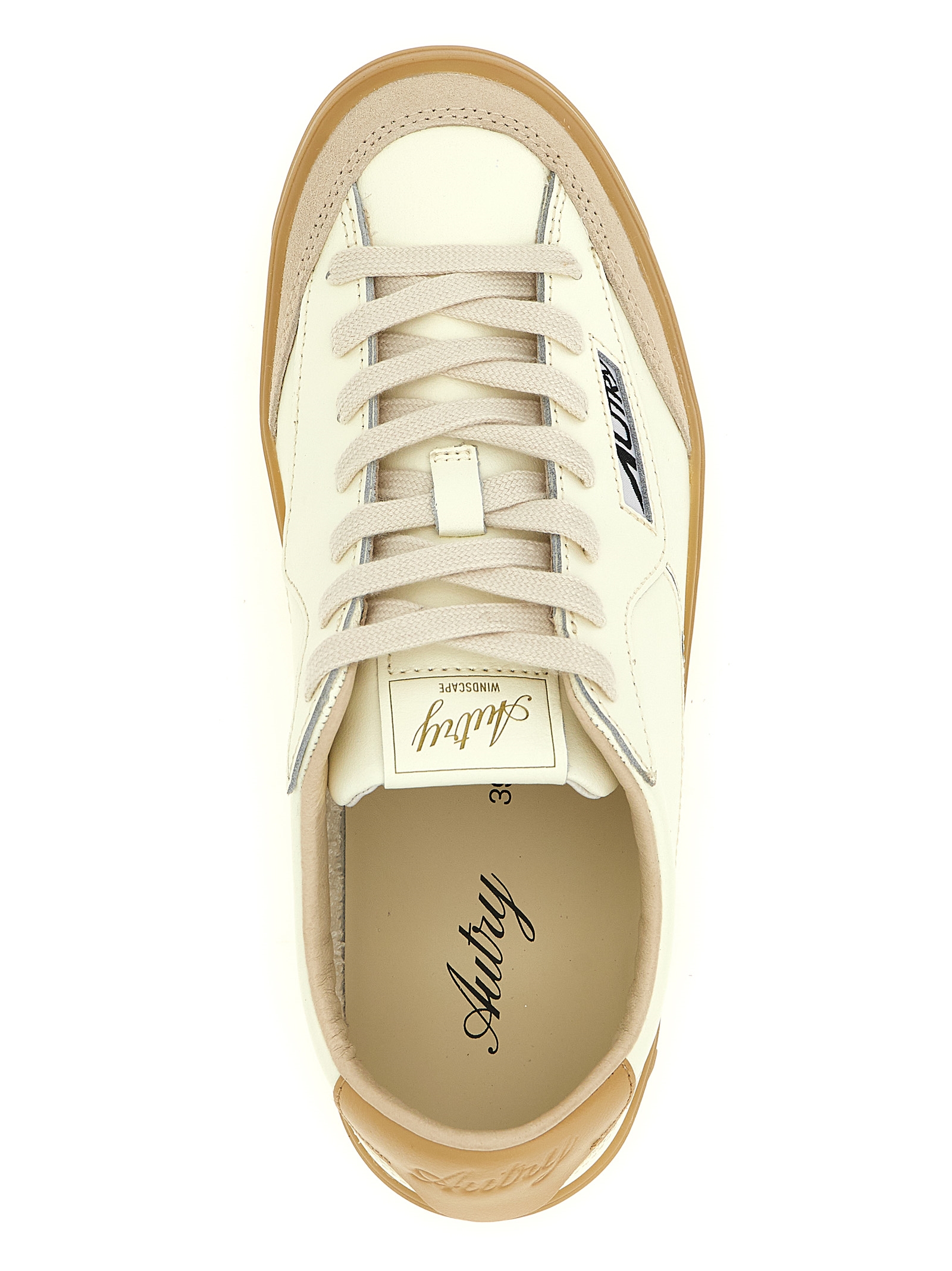 ‘Windscape Low’ leather sneakers, contrast suede toe, side cut-out with logo, logo patch on slightly padded tongue, embossed logo on contrast heel, lace-up closure, raised leather insole, rubber sole with cassette bottom.