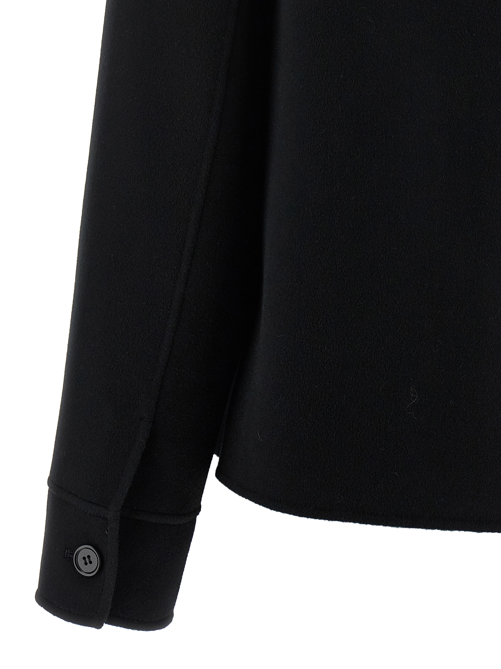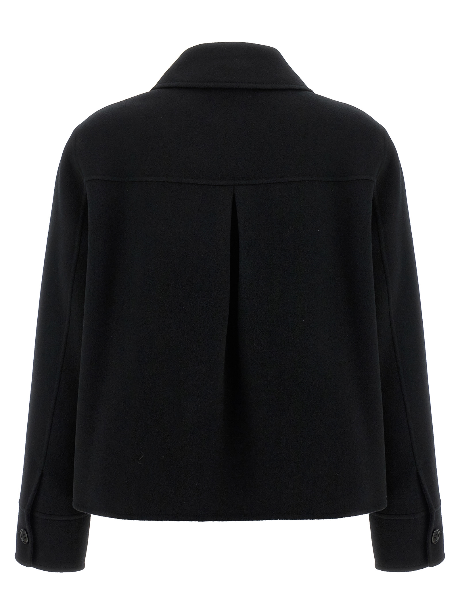 ‘Winter’ short virgin wool coat, unlined, crop model, shirt collar, front button closure, breast pocket, long cuffed sleeves.