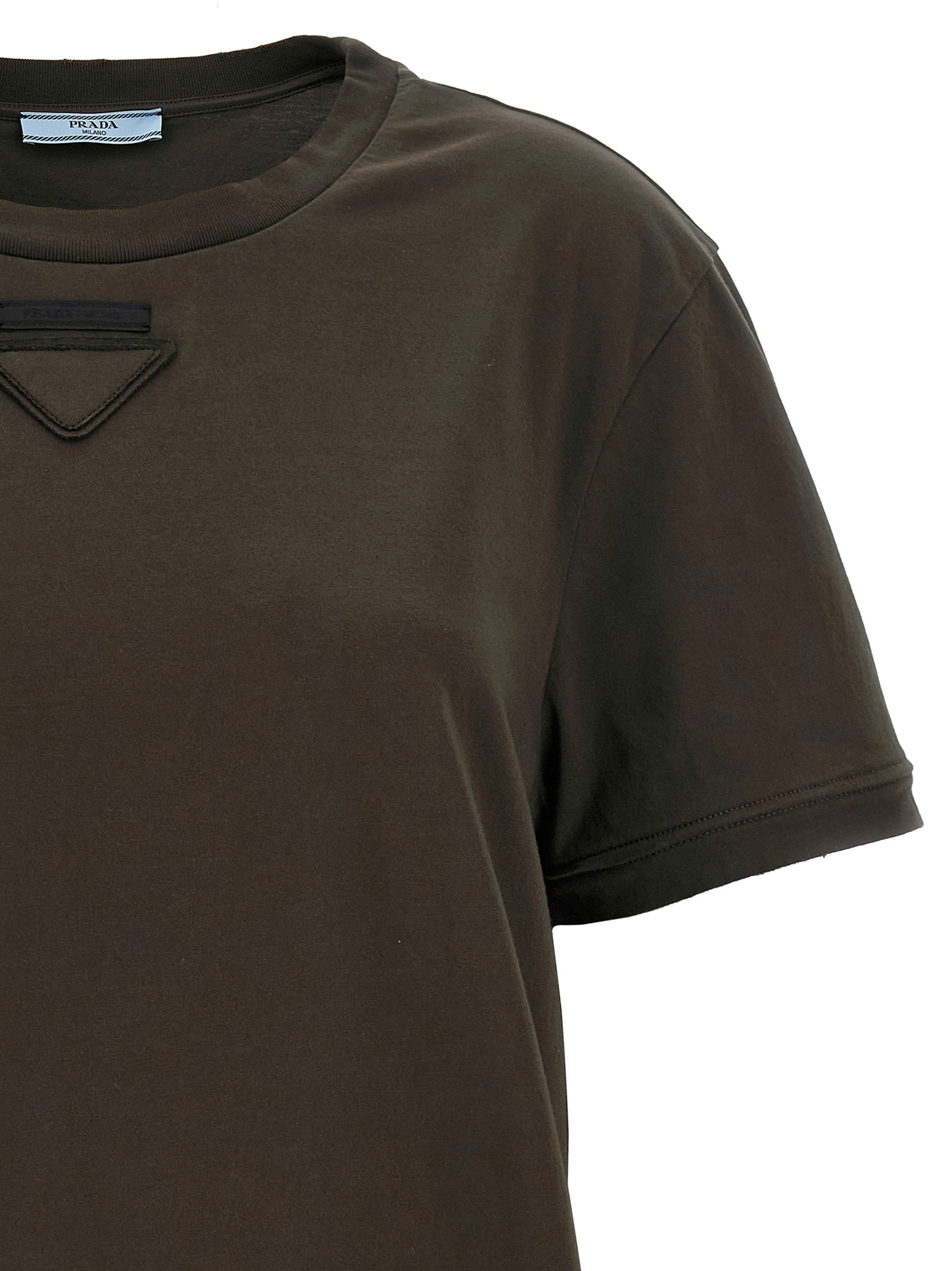 T-shirt in used-effect cotton jersey with wire on the hem of sleeves and garment that allows numerous customizations, triangle logo in tone-on-tone fabric with front tailored label, crew neck, short sleeves.