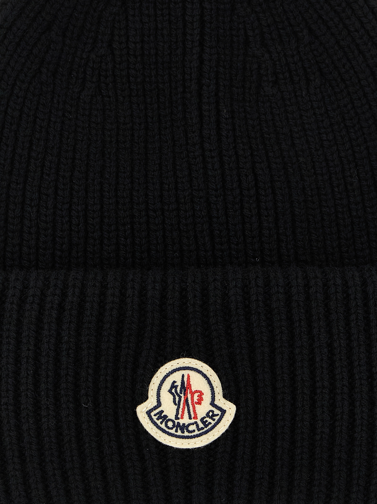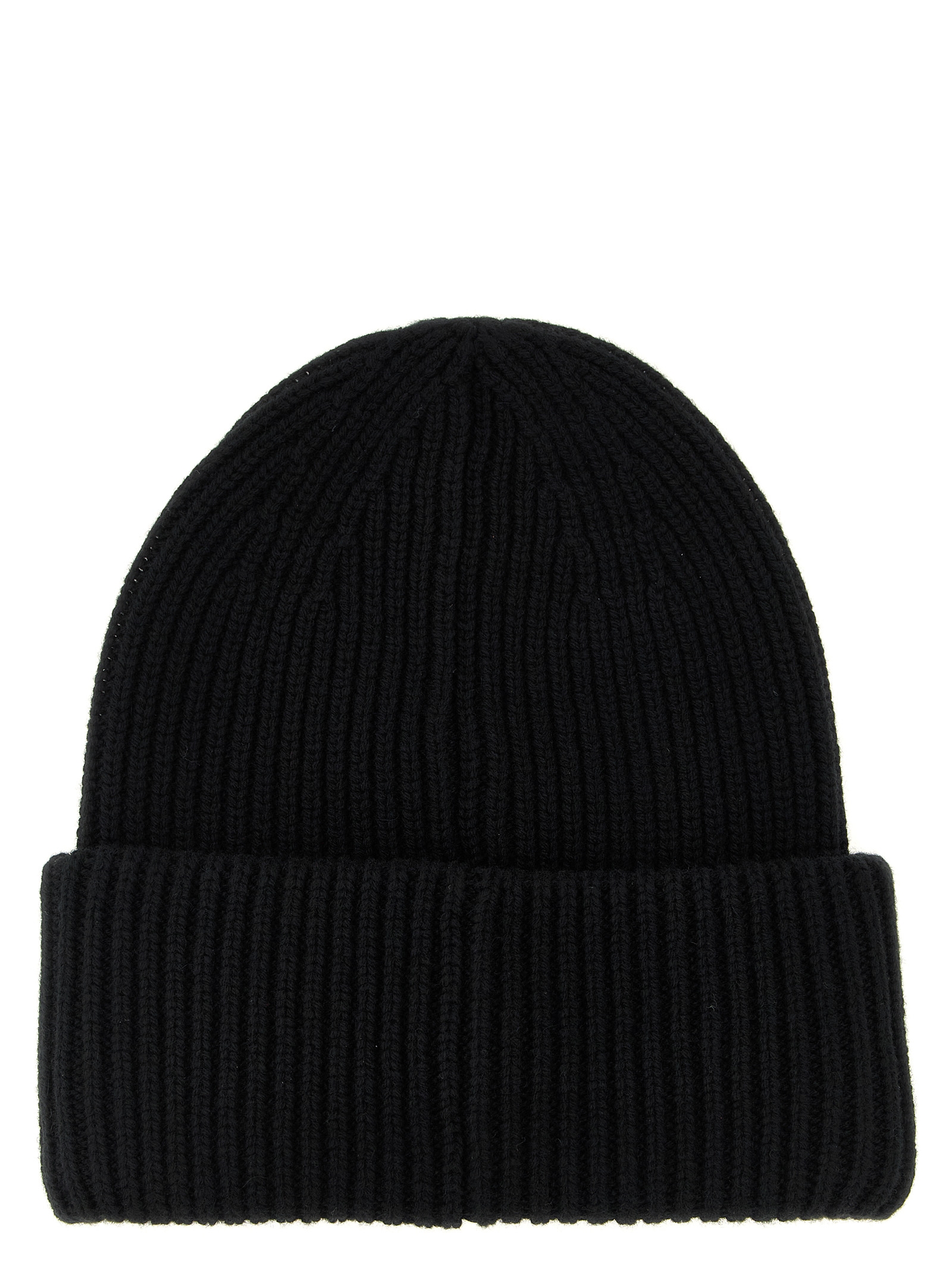 3 fineness wool and cashmere blend beanie with brioche stitch workmanship, turn-up with front felt logo patch.