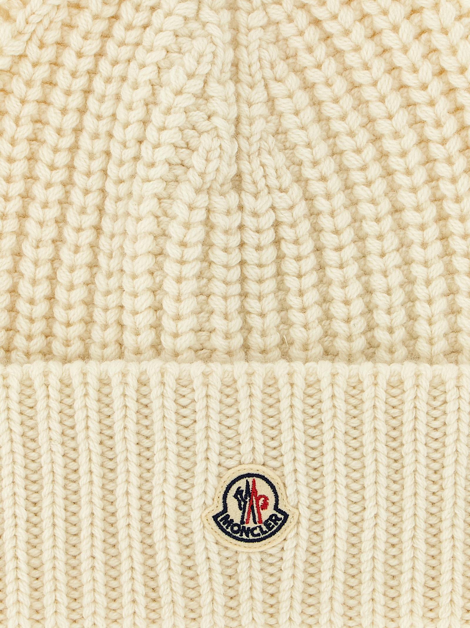 Knitted wool and cashmere blend beanie with front felt logo patch.