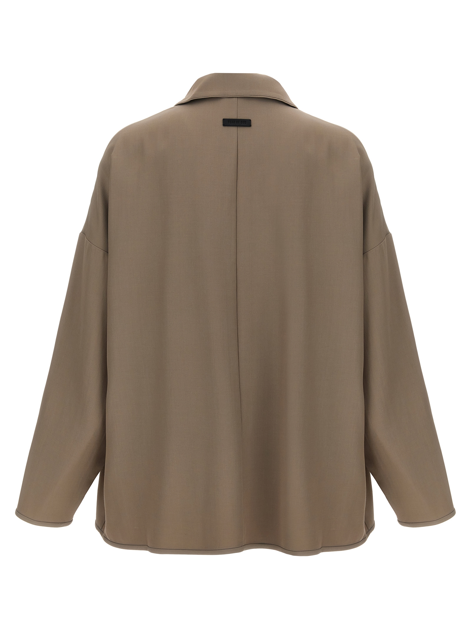 Virgin wool and viscose blend jacket, back leather logo patch, high neck, zip closure, pockets, long sleeves with dropped shoulders.