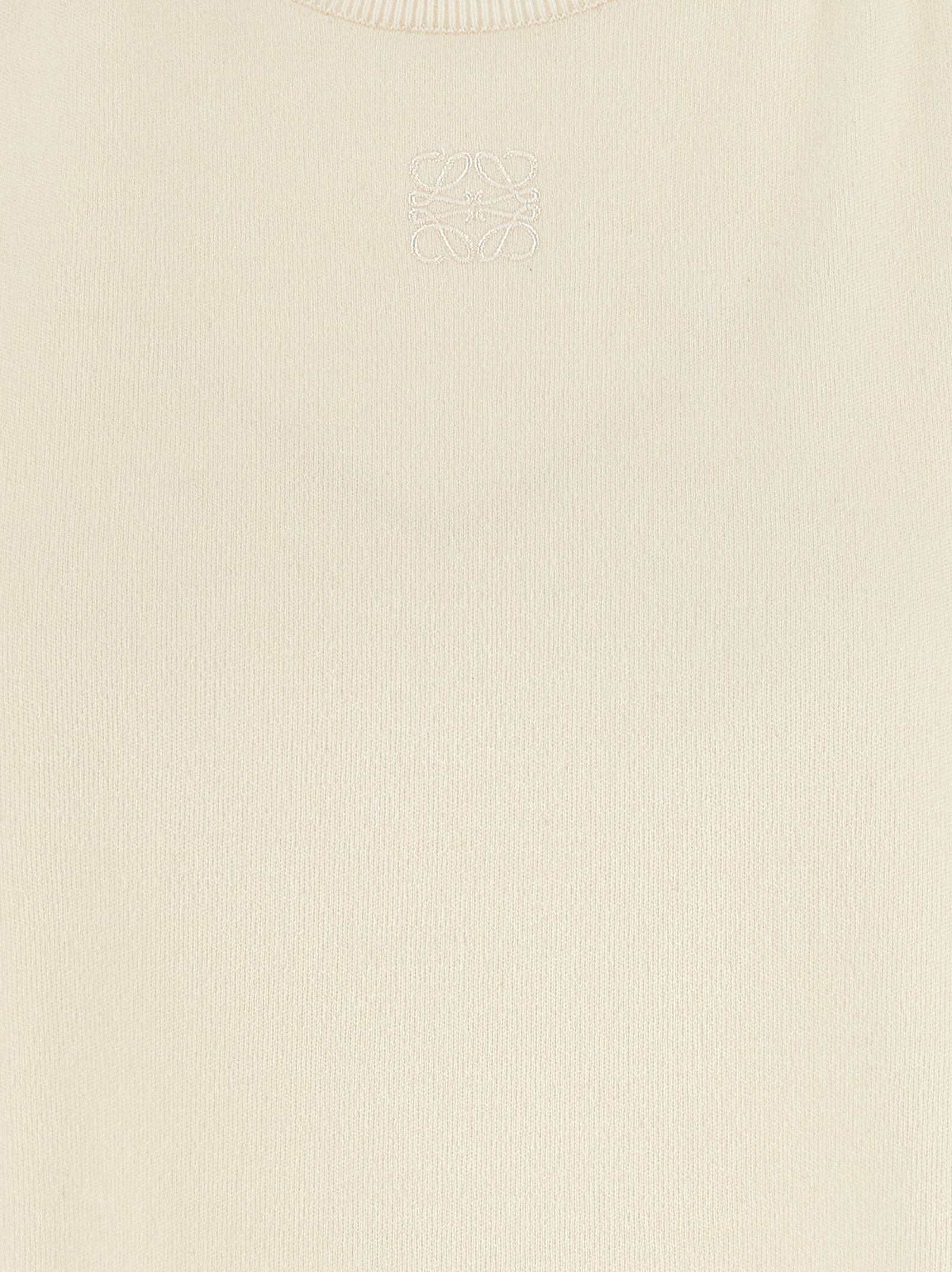 Light wool sweater with jersey stitching, tone-on-tone Anagram logo embroidery on the front, trapezoid silhouette with double layer structure on the front, crew neck, sleeveless, crop model.