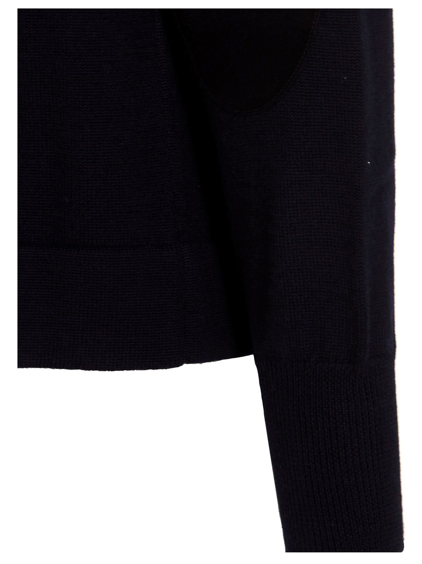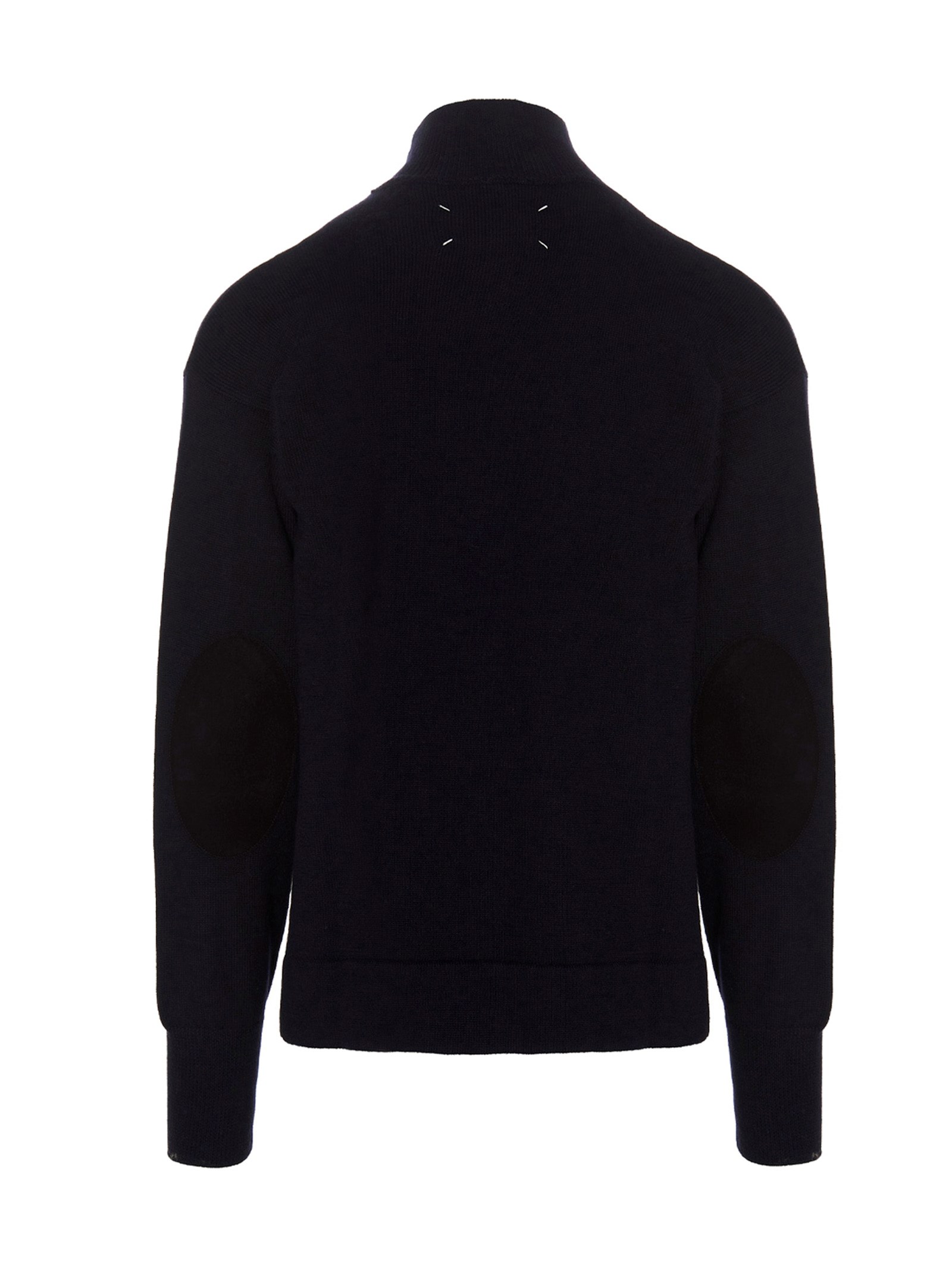 Wool turtleneck sweater with elbow patches and a stitching detail at the back.