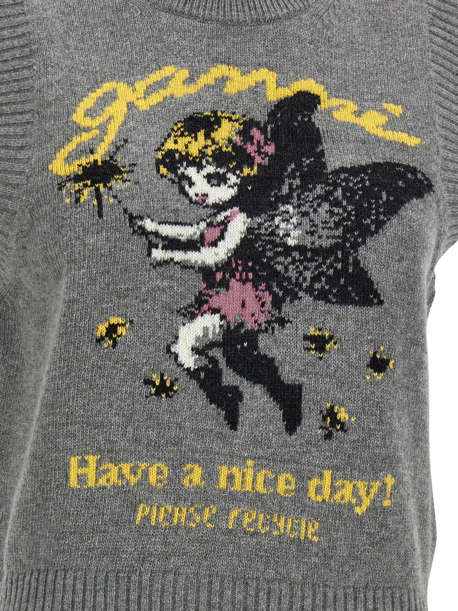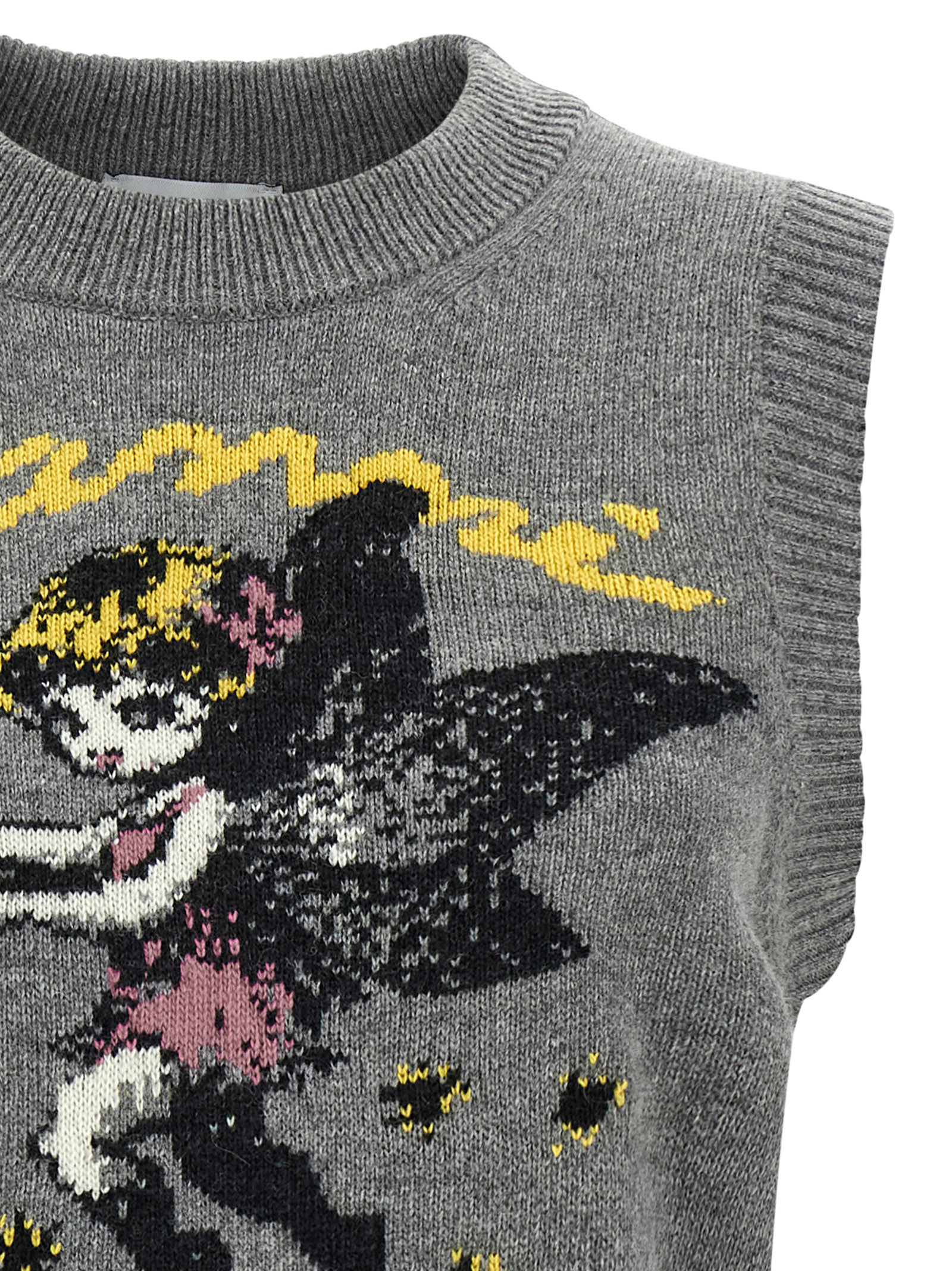 Wool vest with front graphic intarsia, crew neck.