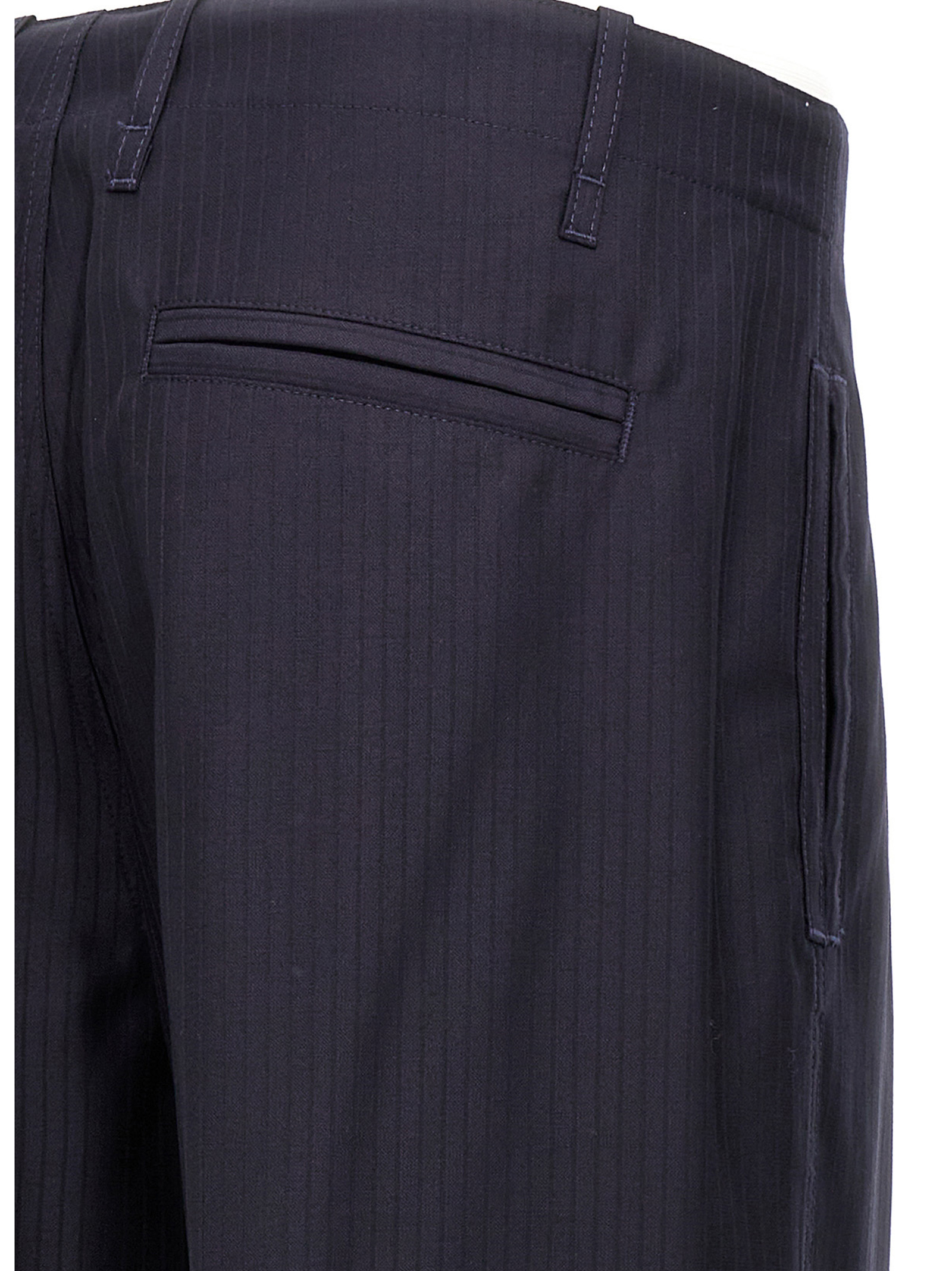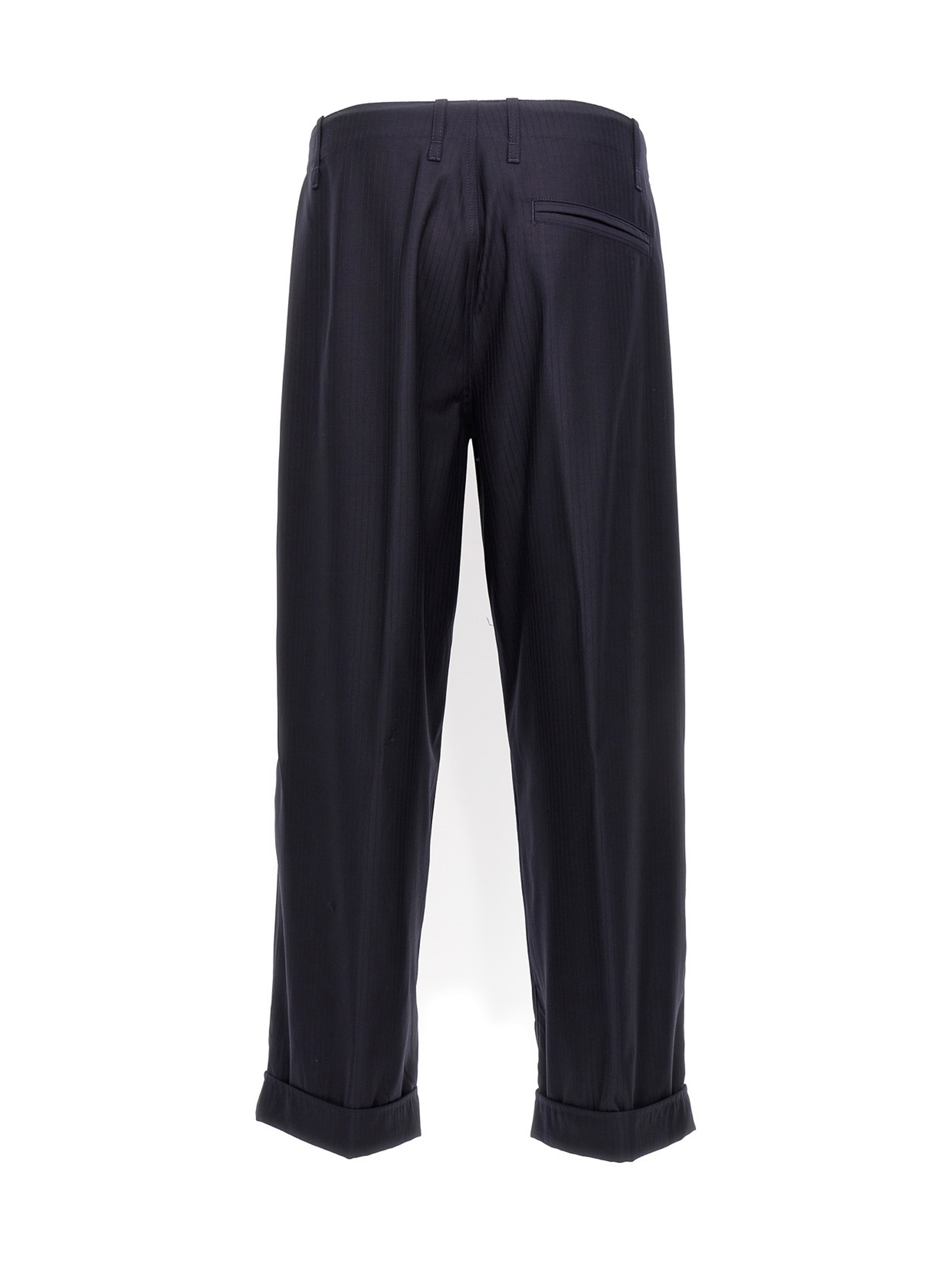 Worker’ tone-on-tone striped fabric pants, featuring front pleats, zip and hook-and-eye closure, pockets and turn-up hem.