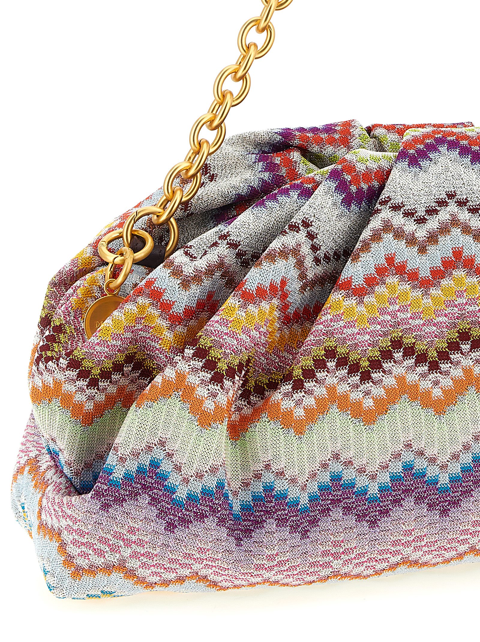 ‘zig zag’ knit lurex handbag with removable chain shoulder strap and magnetic closure.