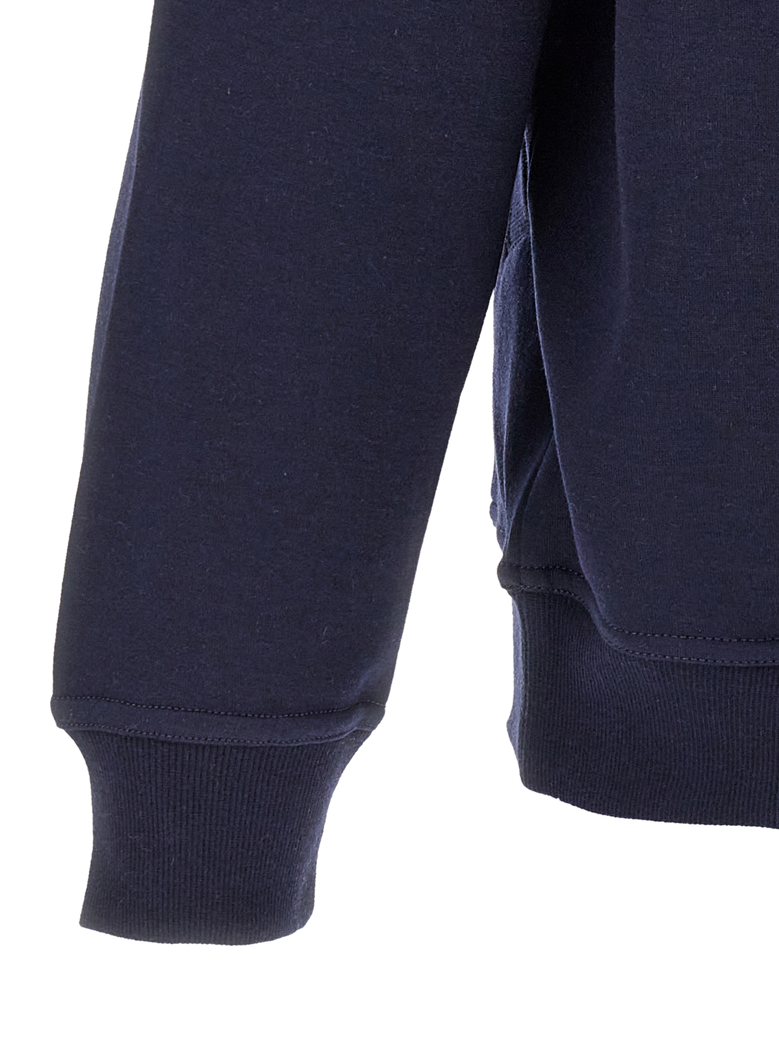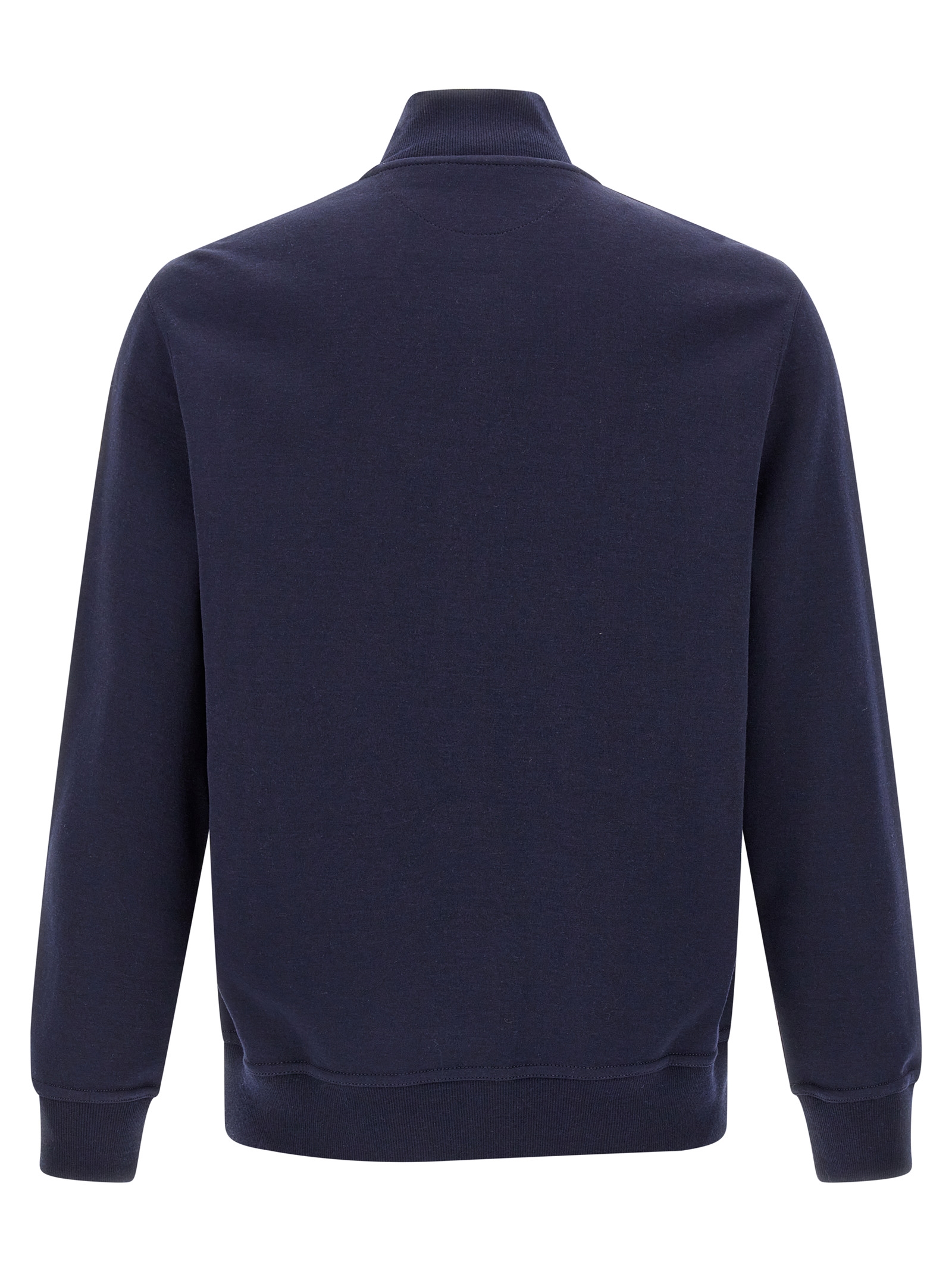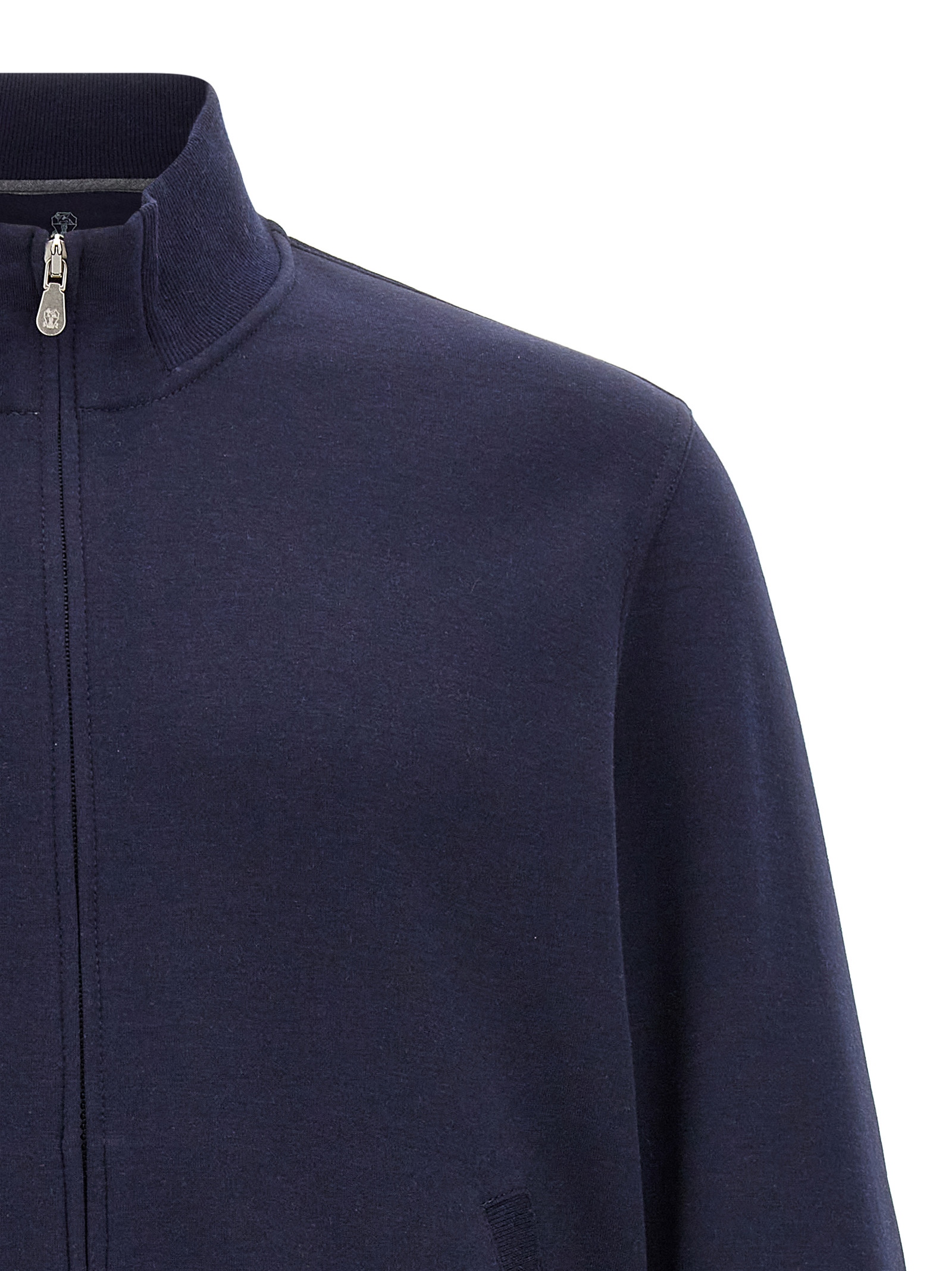 Cotton sweatshirt with cashmere and silk blend, zip closure, and contrasting interior.