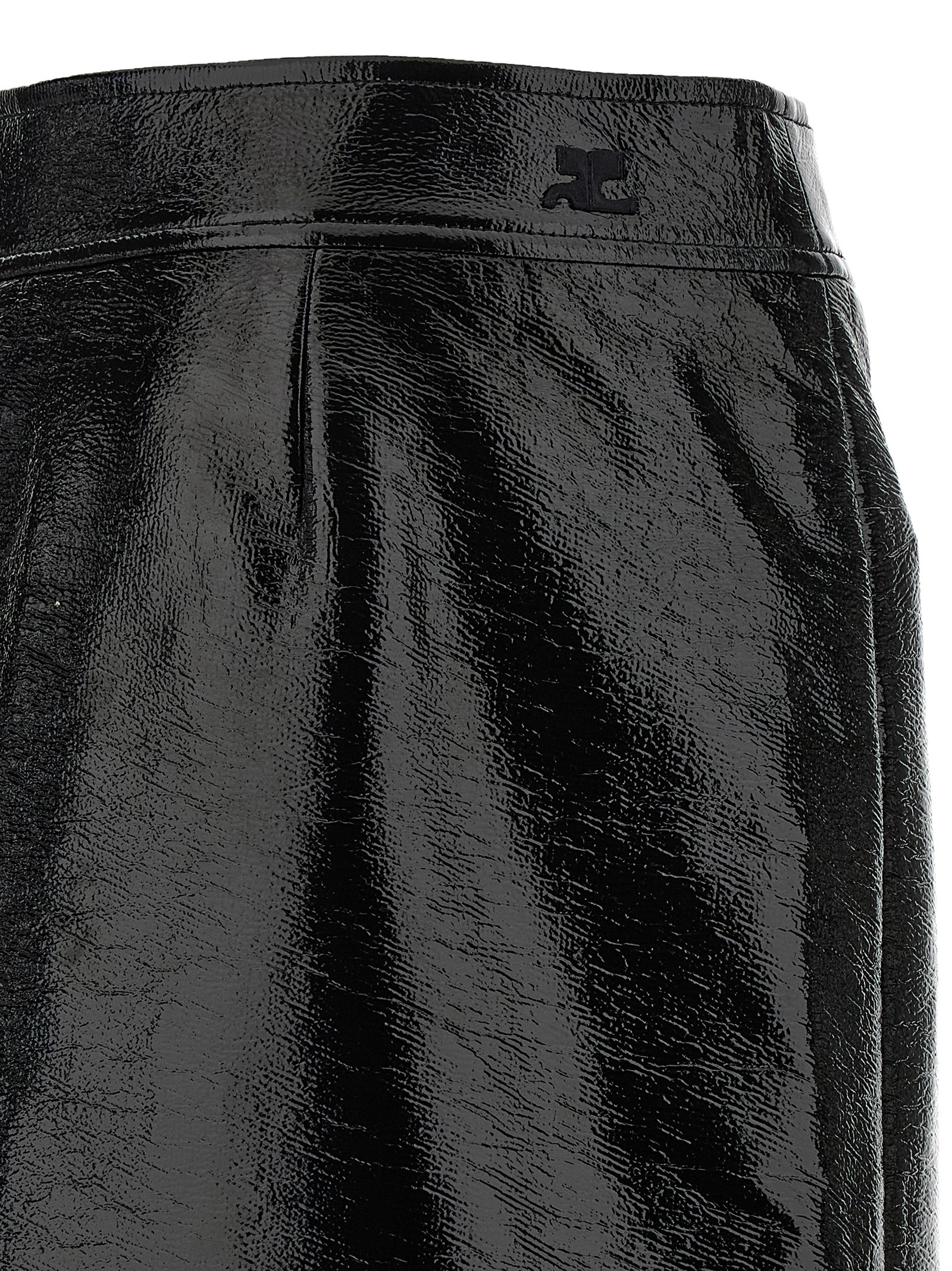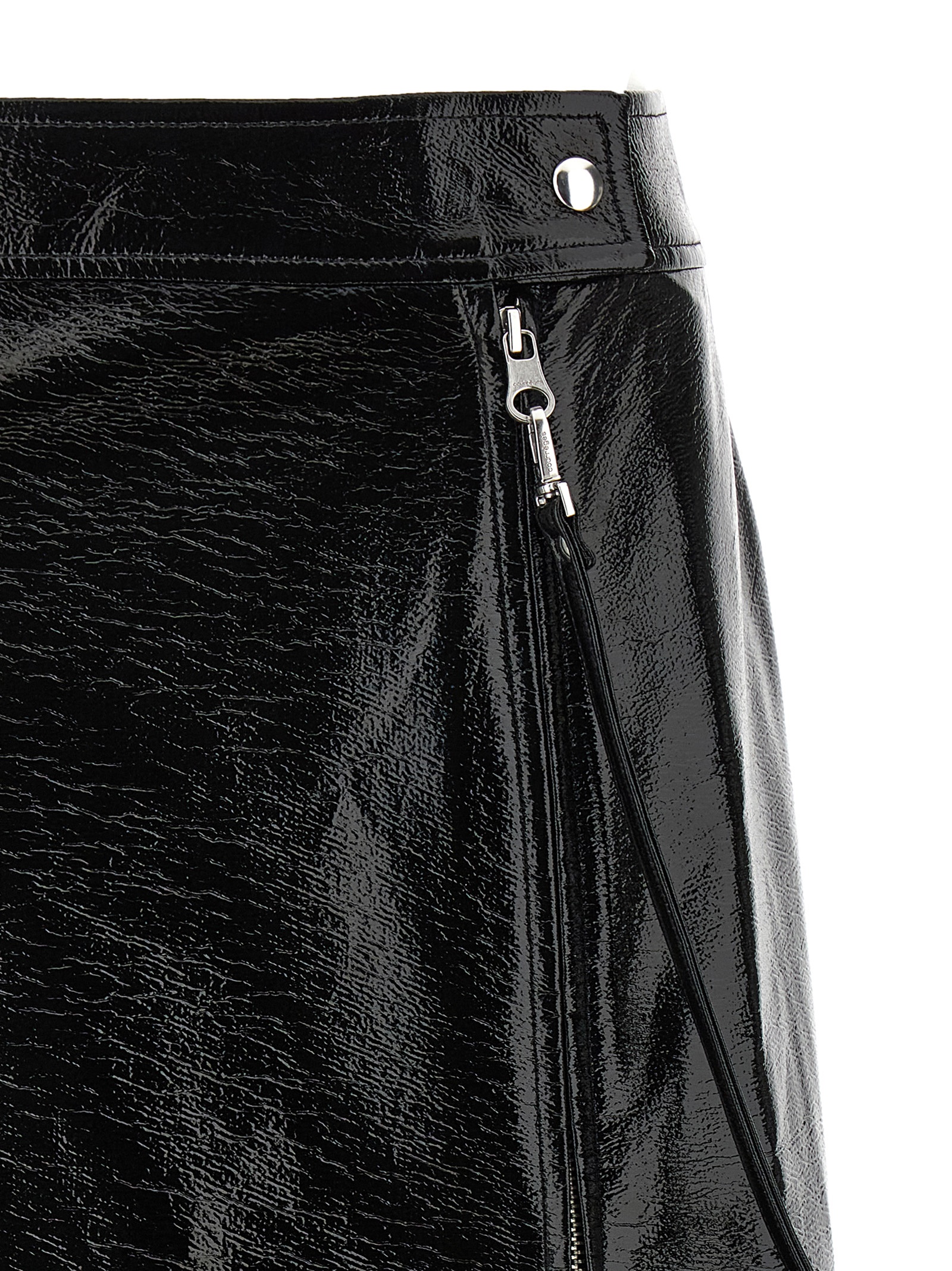 Zipped Vinyl vinyl midi skirt, adjustable zip and front button closure, pockets, flared silhouette.