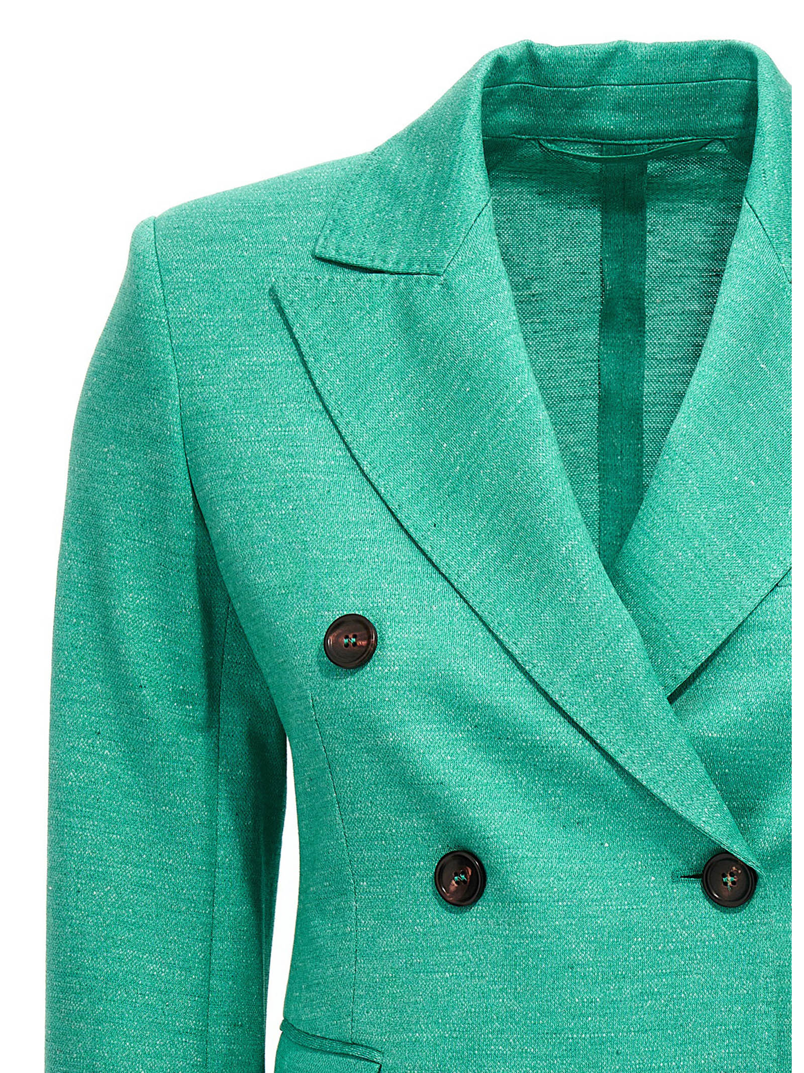 Zirlo’ cotton and linen jersey blazer jacket with double breast style with notch lapels, flap pockets and contrast buttons.