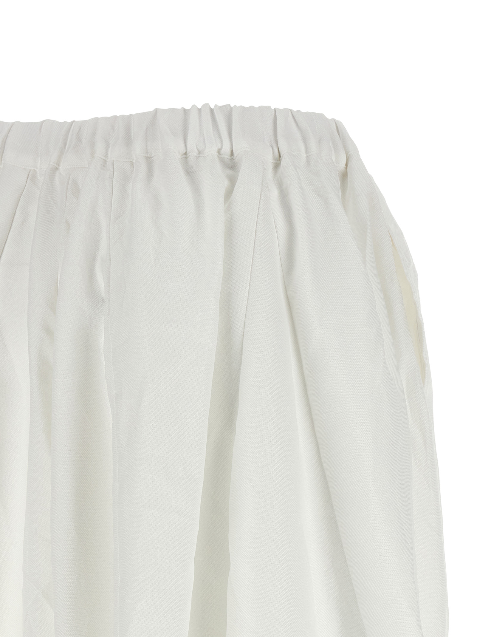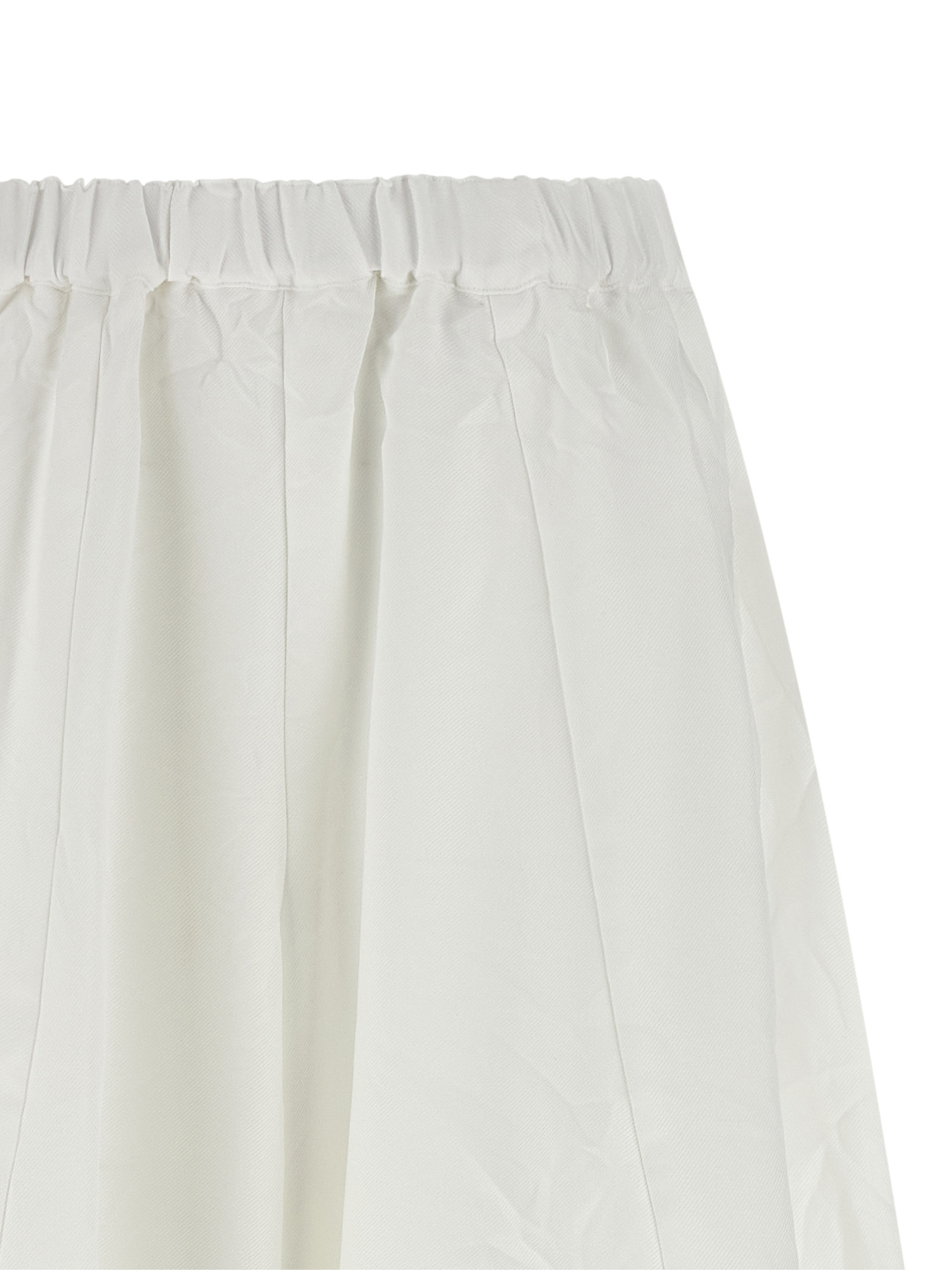 Crumpled shiny twill pants, zuava model, extra wide leg, front and back pincer, drawstring elastic waistband, pockets, drawstring on the leg bottom.